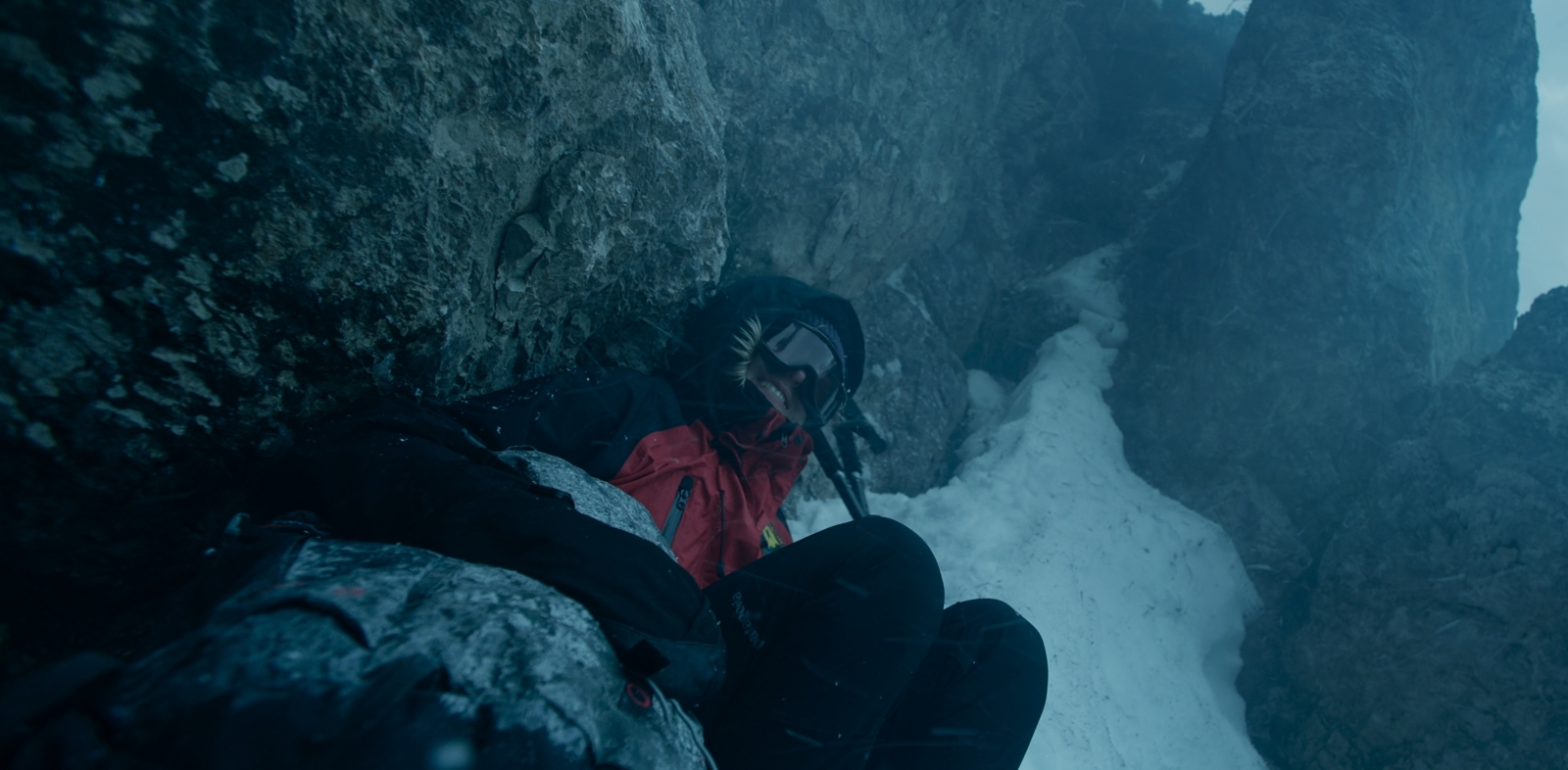 When a climber gets caught in a blizzard, she encounters a stranded stranger and must get them both down the mountain before nightfall.