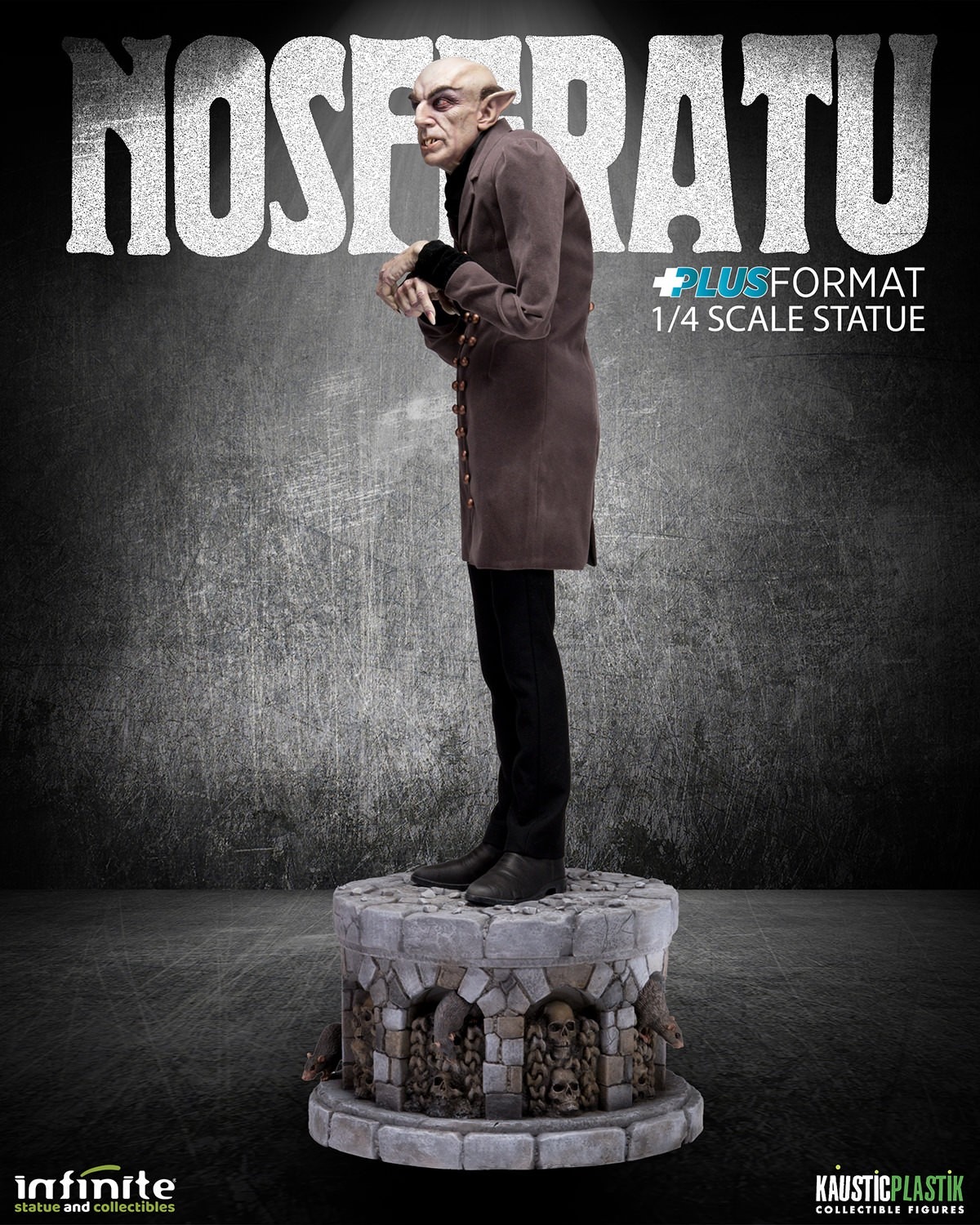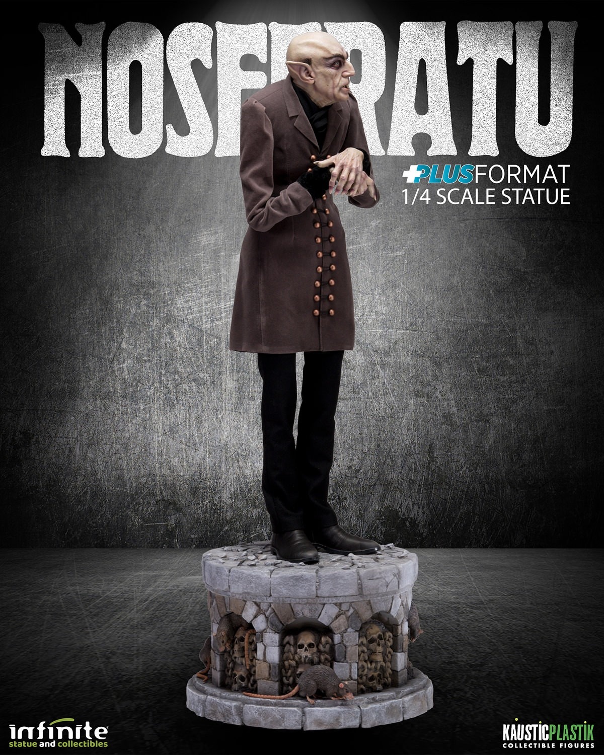 From Infinite Statue Collectibles in collaboration with Kaustic Plastik, a stunning work of art that celebrates one of the most iconic characters in horror cinema: Nosferatu.