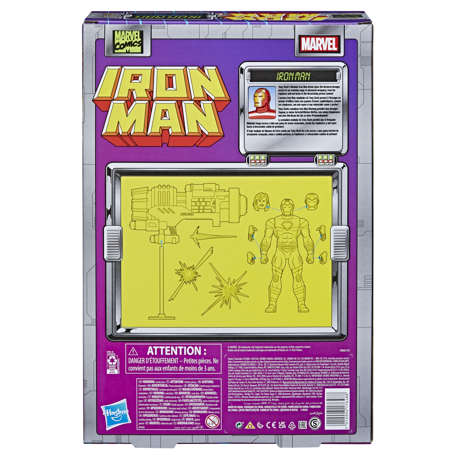 Tony Stark’s Modular Iron Man Armor gives the Armored Avenger access to an evolving range of advanced weaponry, from his repulsors and uni-beam to the devastating plasma cannon! Celebrate the MARVEL UNIVERSE with this MARVEL LEGENDS SERIES RETRO IRON MAN figure. This quality 6-inch scale Iron Man figure features deco inspired by the legendary Model 13 Modular Iron Man Armor as seen in Marvel Comics! The figure features extensive articulation and is highly posable for display and play and comes with a retro-style cardback inspired by the classic Marvel Toy Biz designs. Includes figure, cannon and 10 entertainment-inspired accessories.