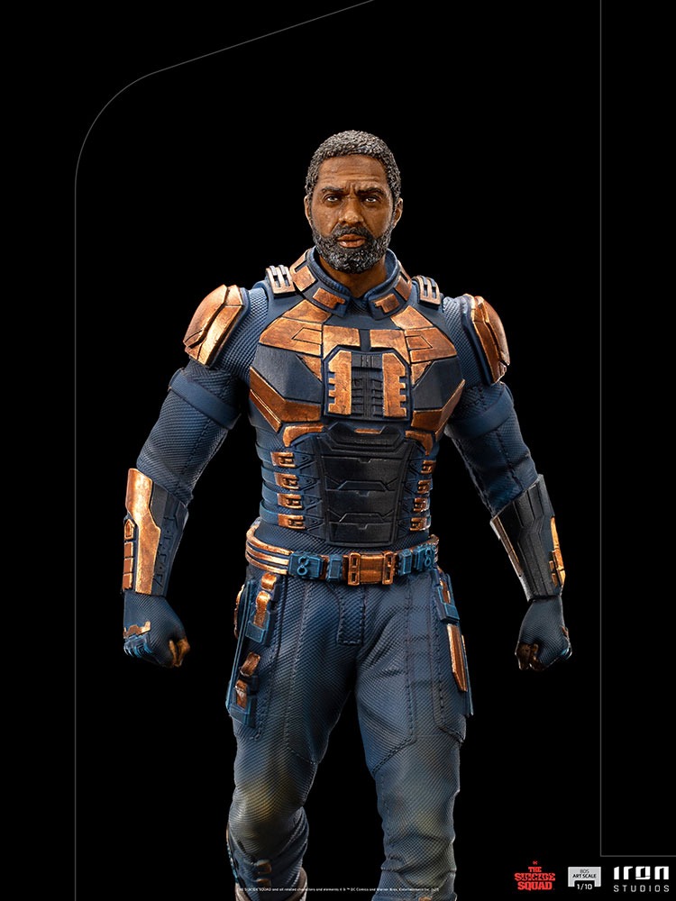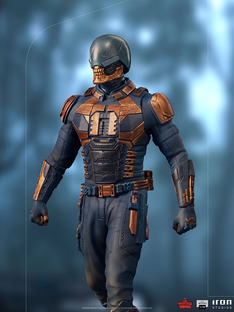With a mission to destroy a laboratory and a prison that holds political prisoners and secret experiments, he finds himself atop a base that resembles the forest terrain of Corto Maltese. He infiltrates himself as the involuntary leader of the Task Force group’s second strike team, better known as The Suicide Squad. Wearing a tactical suit specially designed to protect him, which conceals his insurmountable arsenal, and various utility tools. When necessary he can wear a folding helmet, inspired by a xenomorph alien, which intimidates his opponents and hides his identity. Part of the collection of statues derived from the movie The Suicide Squad, Sideshow and Iron Studios present the deadly “Bloodsport BDS Art Scale 1:10 Statue.” He is a highly intelligent mercenary with skills in strategy and leadership that turns any object into a deadly weapon.