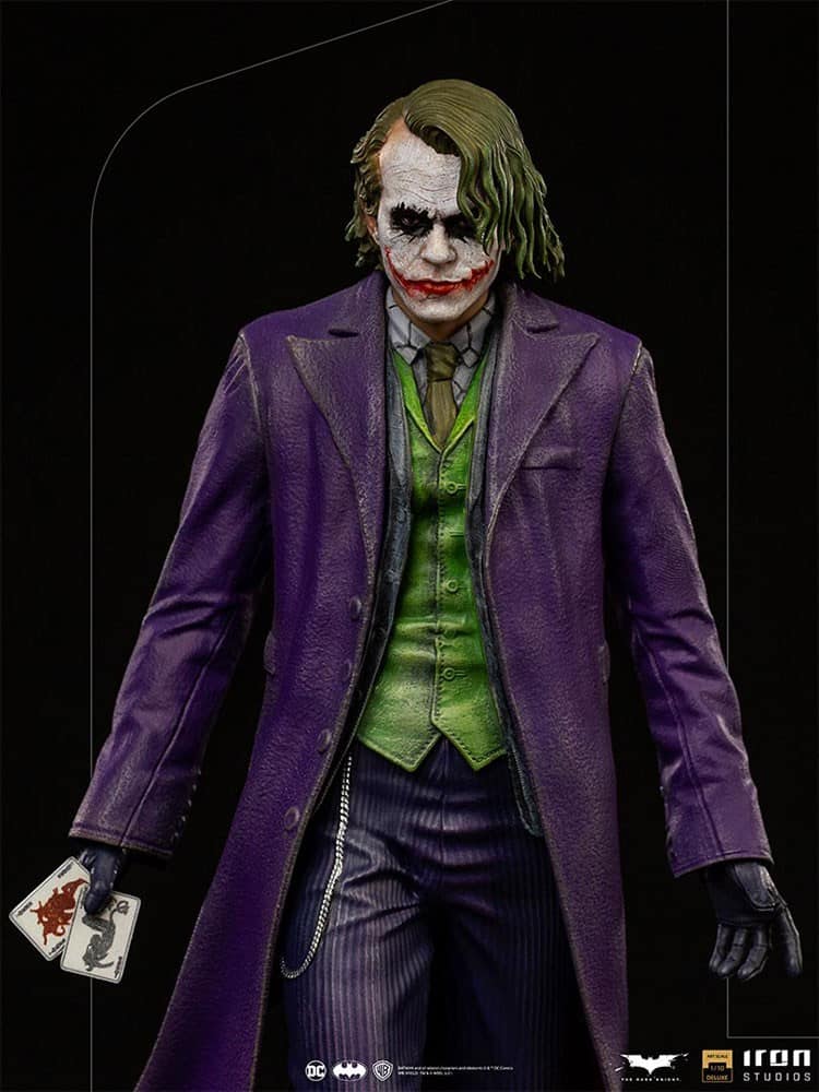 The figure is added to the Batman The Dark Knight line by Iron Studios, derived from the film directed by Christopher Nolan, which brings Batman Deluxe 1:10 to pair with this Joker, as well as the versions of the hero and his archenemy presented in the Mini Co line.