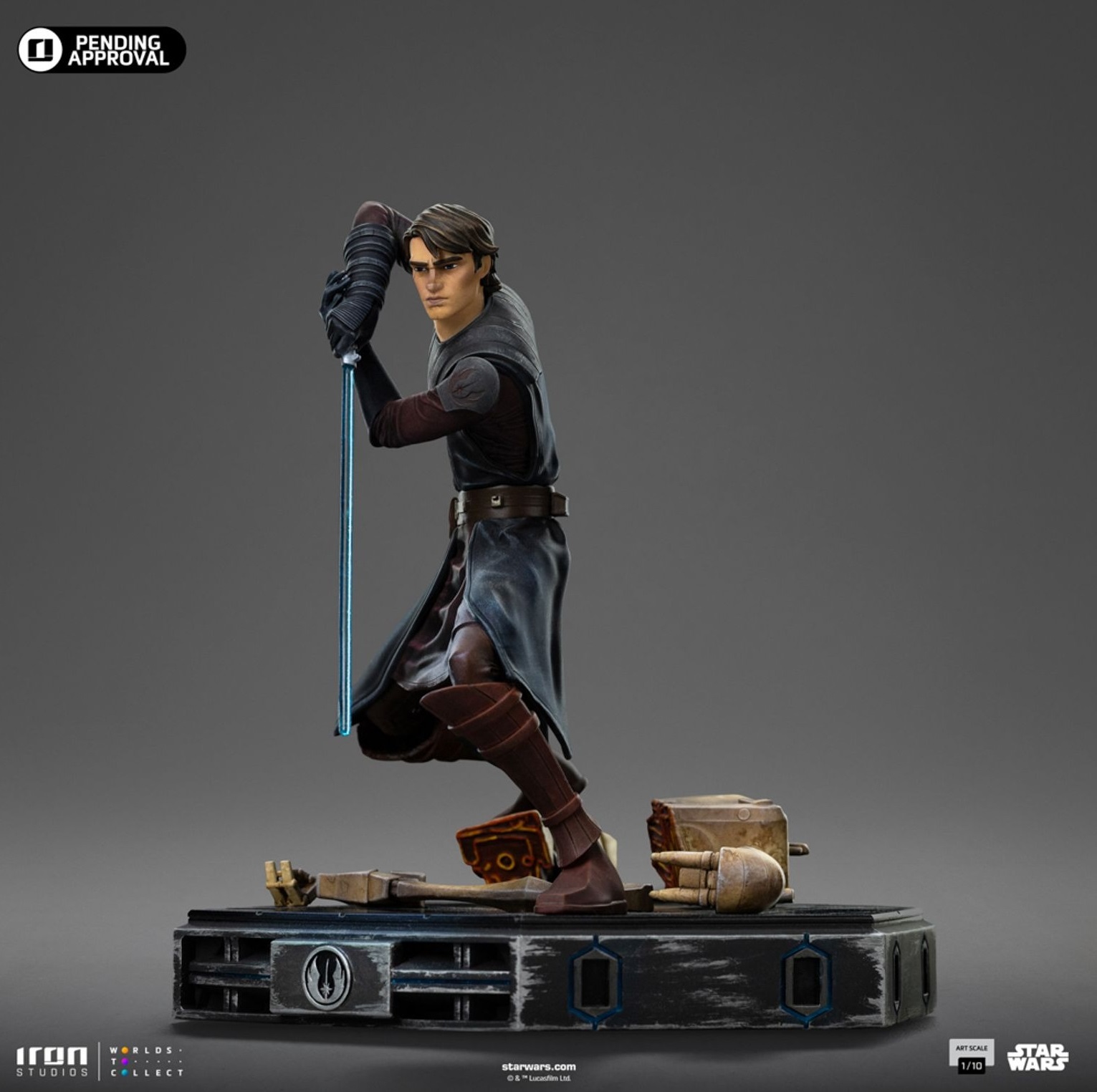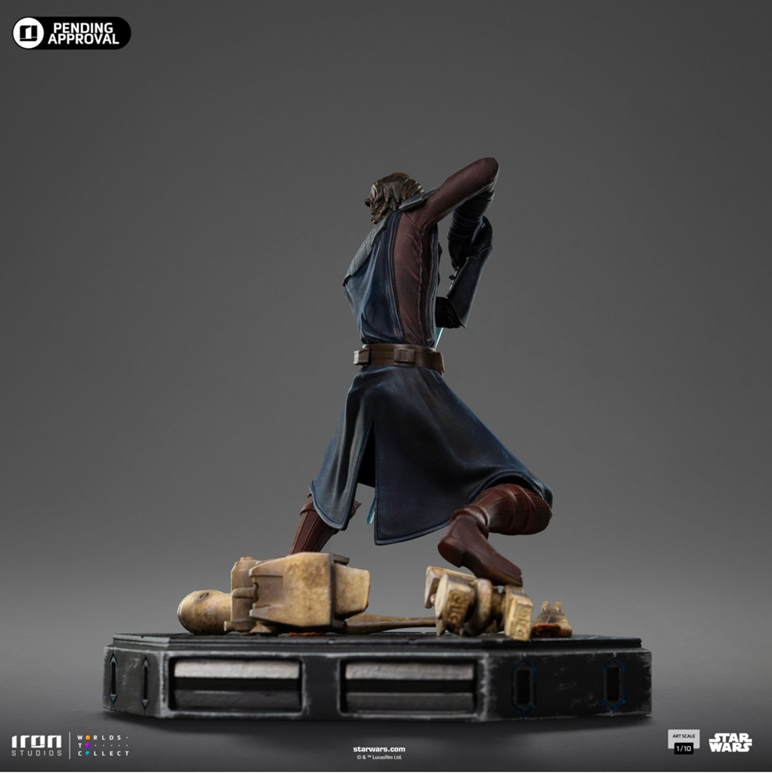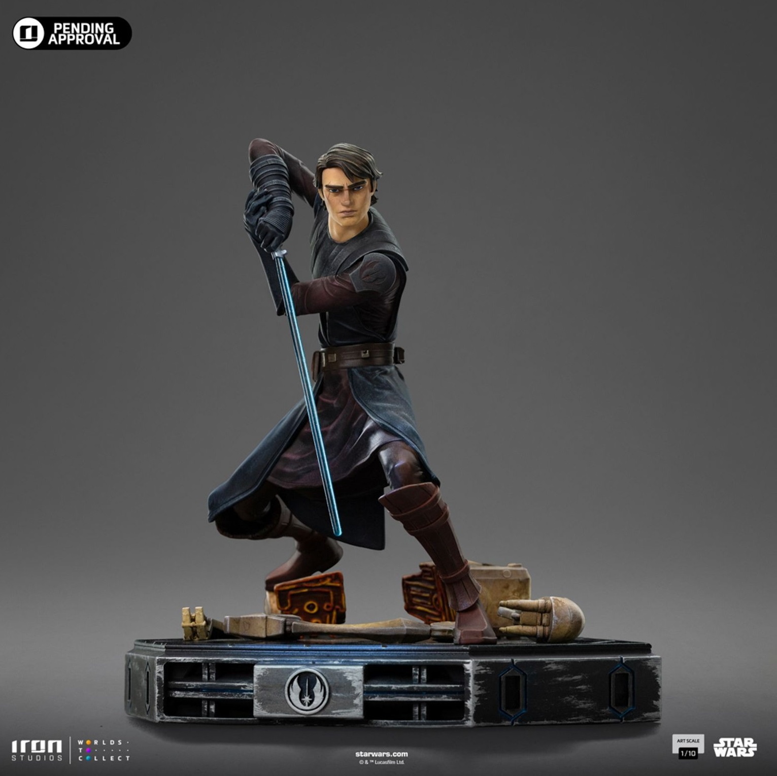 At 1/10 scale, the statue is made of high-quality resin, precisely sculpted and hand-painted to ensure fidelity to the animated visual style. The themed base evokes the battlefields of the Clone Wars.