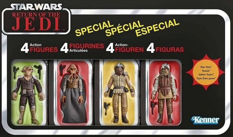 If you missed out on the Return of the Jedi 40th anniversary Jabba’s Court Denizens 4-pack back in 2023, Hasbro has announced it is reissuing Star Wars: The Vintage Collection set which contains 3.75″ figures for Tessek, Taym Dren-garen, Ree-Yees, and Valken Tezeri. It is available to pre-order now, priced at $79.99/£73.99; check out the promotional images here…