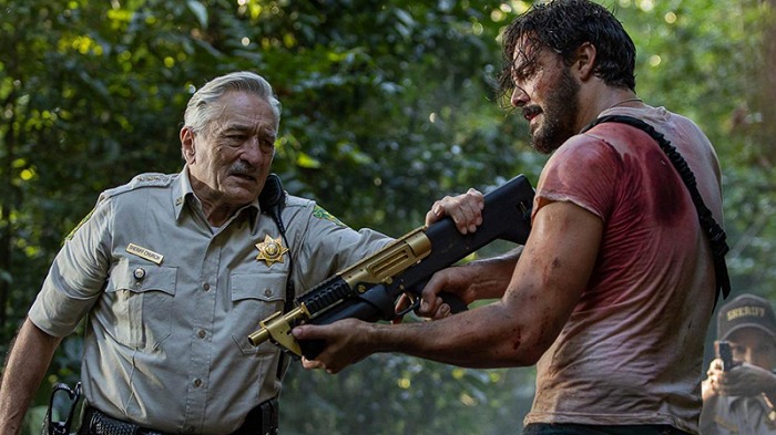 Sheriff Church (Robert De Niro) and Detective Zeppelin strive to keep the peace in their rough town, where residents’ only two interests are the church or oxycodone. Newly engaged Shelby John (Jack Huston) and Ruby Red want a fresh start. They decide to have a family together and get clean, with the support of Peter, Ruby’s brother-in-law (John Malkovich). However, Shelby discovers his beloved Ruby dead on their porch before she could fulfill her final wish: to be baptized in the river and washed away from her past sins. Filled with fiery rage, Shelby embarks on a vengeful killing spree to right all the wrong done to Ruby by every link in the drug dealing chain. Armed with nothing but adrenaline and a nail gun, Shelby picks off dealers and junkies one by one until he gets to the top. Sheriff Church and Detective Zeppelin must race against the clock to put an end to Shelby’s vigilante justice before his fight with the crime lord Coyote (Quavo) turns the entire town into a bloodbath.