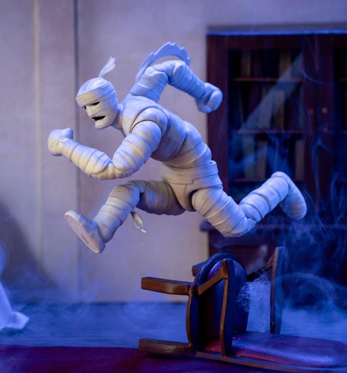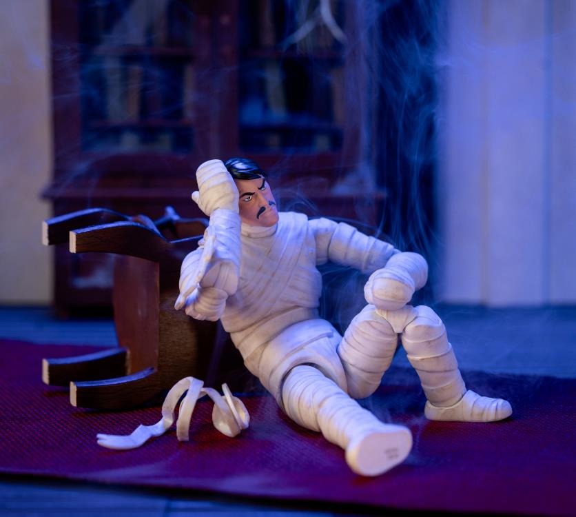 With its eerie presence and relentless pursuit of the gang, the Mummy of Ankha is ready to haunt your collection – unless, of course, you’ve got that missing coin! Expertly designed in 1:12 scale, standing slightly above 6-inches tall, this figure perfectly captures the Mummy’s tattered bandages (with articulation), ancient Egyptian-inspired details, and menacing posture. With remarkable articulation, you can pose it mid-lurch, arms outstretched in pursuit of those meddling kids, or creeping through the shadows in classic Scooby-Doo fashion.