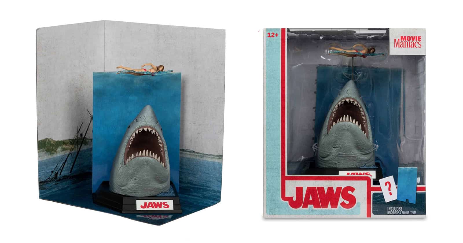 Celebrating the 50th anniversary of Jaws, McFarlane Toys has revealed a new 6-inch Movie Maniacs collectible figurine which recreates the iconic poster of Steven Spielberg’s 1975 blockbuster. It is available to pre-order now, priced at $35.99; check it out here…