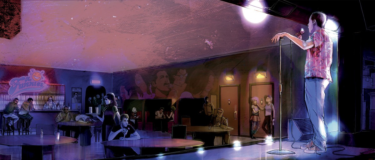 Dying is Easy takes place in the dimly-lit venues and grimy back alleys of the comedy world, where every stand-up is looking out for themself, making enemies left and right. When an upstart comedian with a particularly ugly past achieves stardom by stealing jokes, he quickly earns a target on his back. It’s not long before the laughter stops… and the gunplay begins.