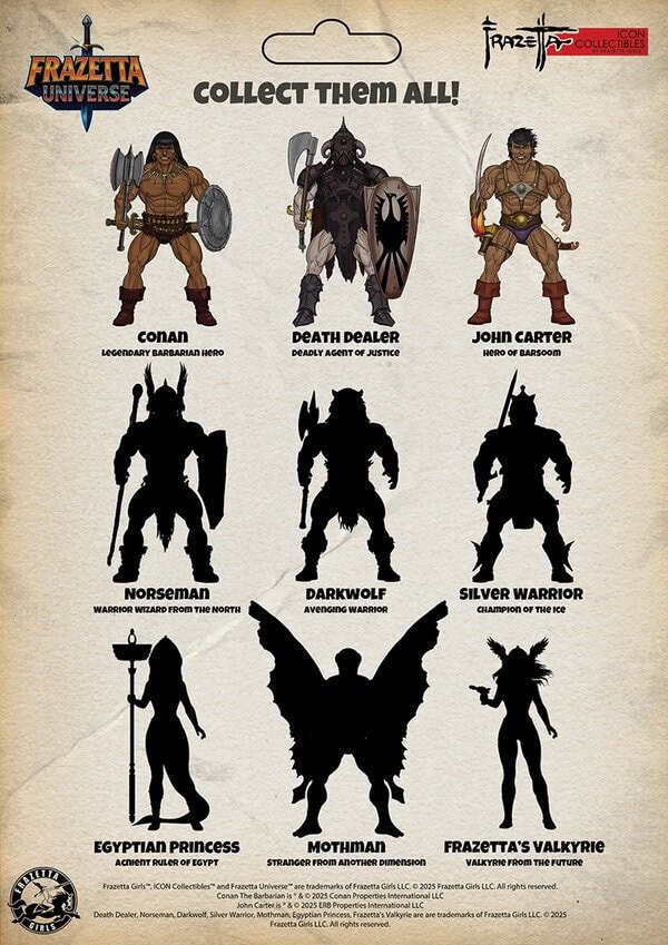 Frazetta Girls and ICON Collectibles are paying tribute to the works of iconic fantasy artist Frank Frazetta this May with the launch of an all-new line of 5.5″ retro-styled Frazetta Universe action figures, with pre-orders now available for the first wave of figures featuring John Carter of Mars, Conan the Barbarian, and Death Dealer. Check out the official promotional images and details below for both the standard releases and Frazetta Girls Exclusive variants, along with a tease of the second and third wave figures…