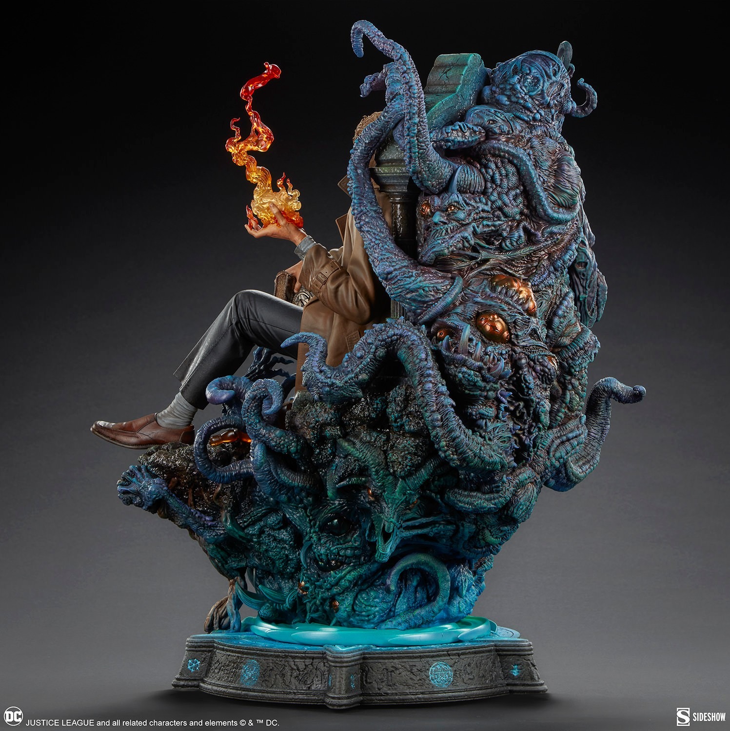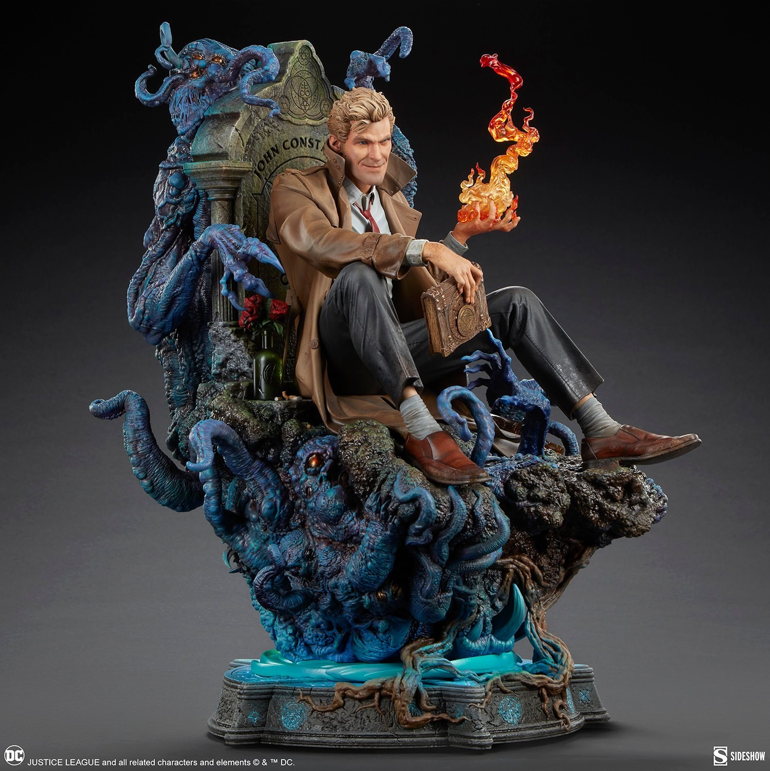 What’s another spell gone wrong for this charming degenerate? Measuring 21” tall, 16.5” wide, and 14.7” deep, the John Constantine Premium Format Figure finds everyone’s favorite antihero lounging against his own grave. A swarm of oozing, pustulant demons rises from Hell to drag Constantine back down where he belongs. Nonchalant as ever about his sorry state, Constantine simply summons another fireball and doesn’t bother to consult the arcane tome in his hand. He’ll banish these evil entities when he feels like it — and no sooner.