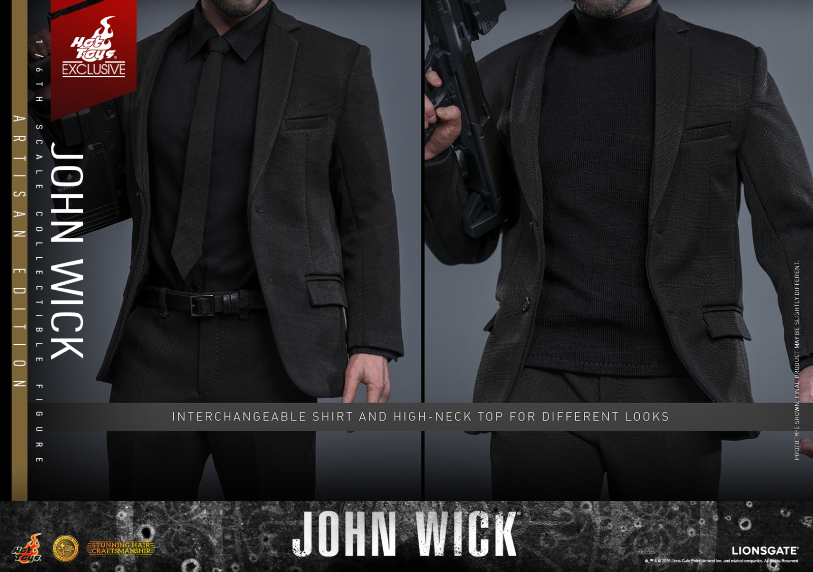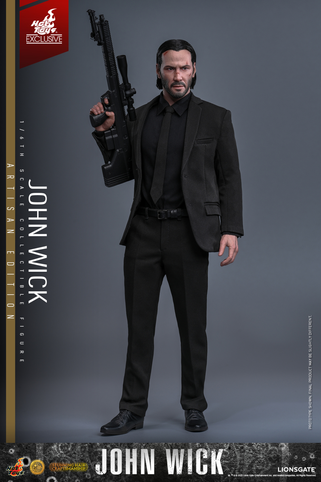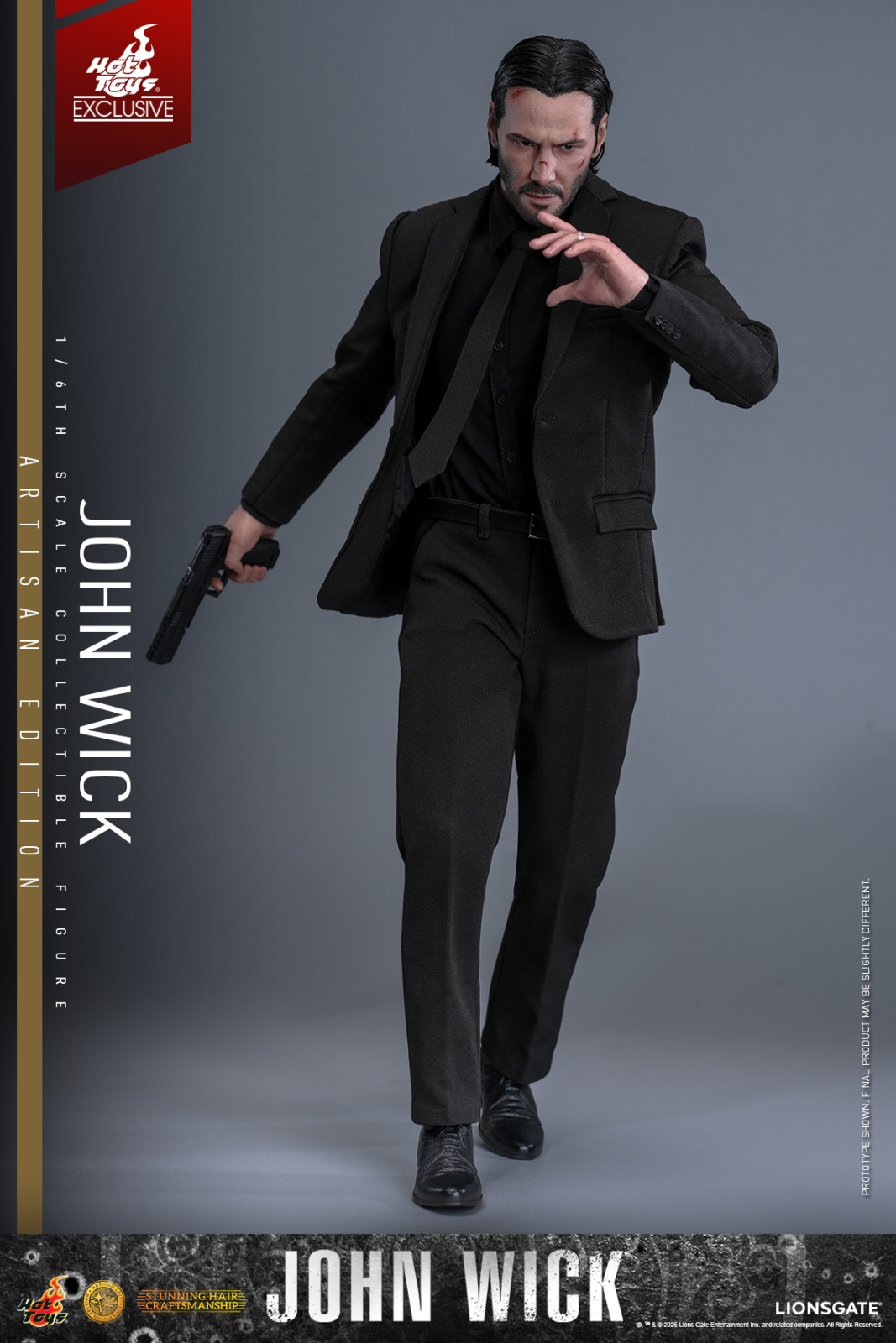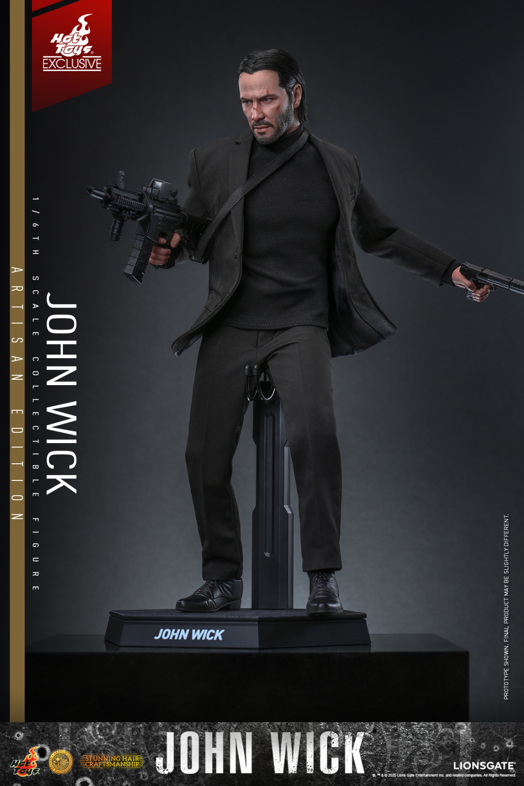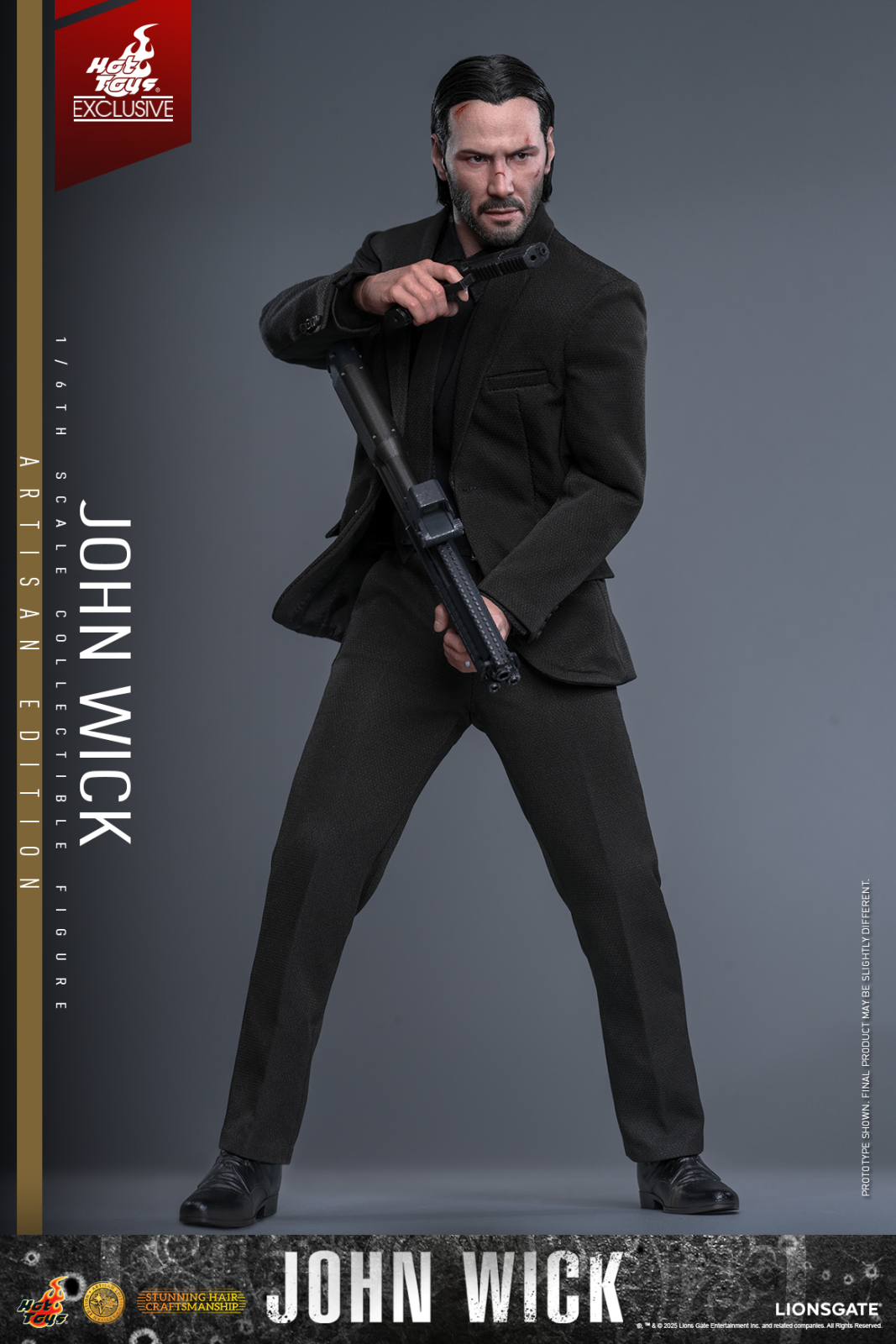 Hot Toys proudly presents the 1/6th scale John Wick Collectible Figure (Artisan Edition). The figure features a newly developed head sculpt with separate rolling eyeballs and battle-damaged paintwork. The Artisan Edition features a meticulously implanted mid-length slicked back hairstyle made of wool material, elevating the figures’ realism. The Artisan Edition is an exclusive release available with a limited quantity of 4,000 pieces only in selected markets.
