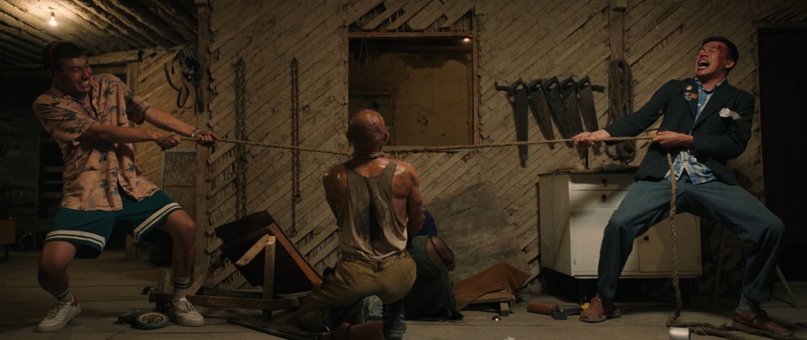 It begins with a couple quarreling about baby names, and it ends in gory revenge and slapstick splatter in a seemingly indestructible, one-eyed psychopath’s cabin in the woods. In between was supposed to be a calming fishing trip for three old friends to unwind in the wilds. If only they hadn’t witnessed a brutal murder by local mobsters. By the end, what is certain is they will all learn about life’s priorities.