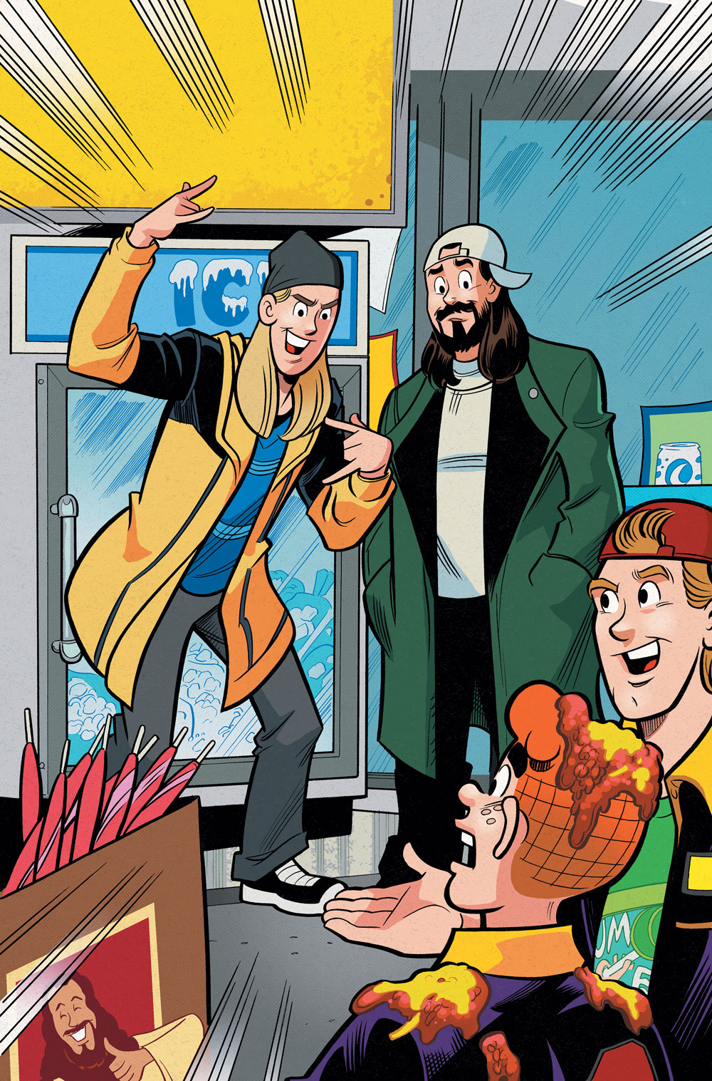 “I believe it was Stoic philosopher Epictetus who first said, ‘Everything’s Archie.’ And he was right,” said Smith. “Whether it be Veronica in Clerks or the Mister Weatherbee conversation in Chasing Amy, the influence of Archie Andrews is mixed into the brick and mortar of my pop cultural foundation. So, there was no way I was passing up this incredible opportunity to collide the worlds of Riverdale and the Askewniverse, and introduce icons on the order of Archie, Betty, Veronica, Jughead, Moose, Reggie, and Josie to reprobates like Jay and Silent Bob.”