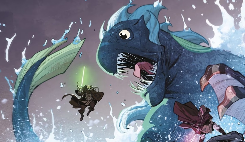 Jedi Master Kit Fisto has been sent to the ocean planet Tordus, alongside Mace Windu and Shaak Ti, to investigate a controversial underwater research facility. The facility is in danger of flooding and being crushed into rubble, and if that’s not enough, there are giant monsters circling them. With disaster looming, his diplomatic excursion quickly becomes a rescue mission! Kit Fisto and his fellow Jedi must race against the clock to save innocent lives from the hungry leviathans that fill the depths. This standalone story is full of murky intrigue and ancient abyssal nightmares. Can the Jedi fend off the danger lurking in the ocean’s briny waters?
