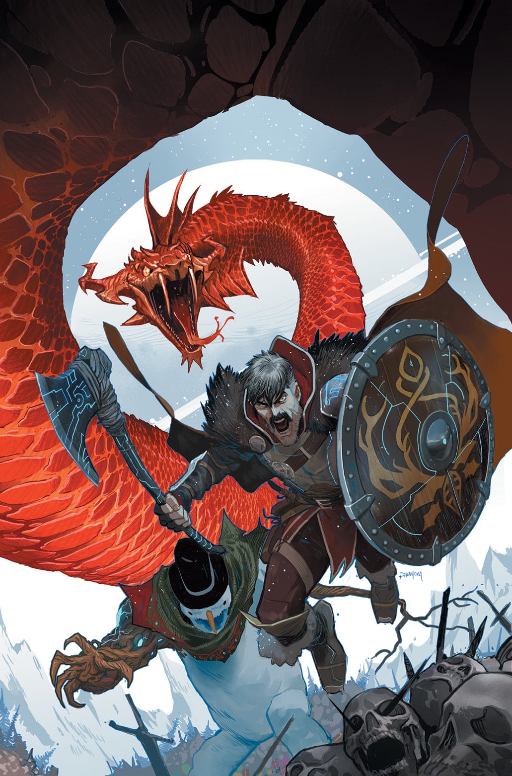 KLAUS AND THE CRYING SNOWMAN #1 continues the annual holiday tradition of new Klaus comic book releases, dating back to the franchise launch. Now, Klaus must help an absentee dad-turned-snowman make amends before melting away for good. And probably before he’s defeated by a pantheon of Norse Gods and their minions.