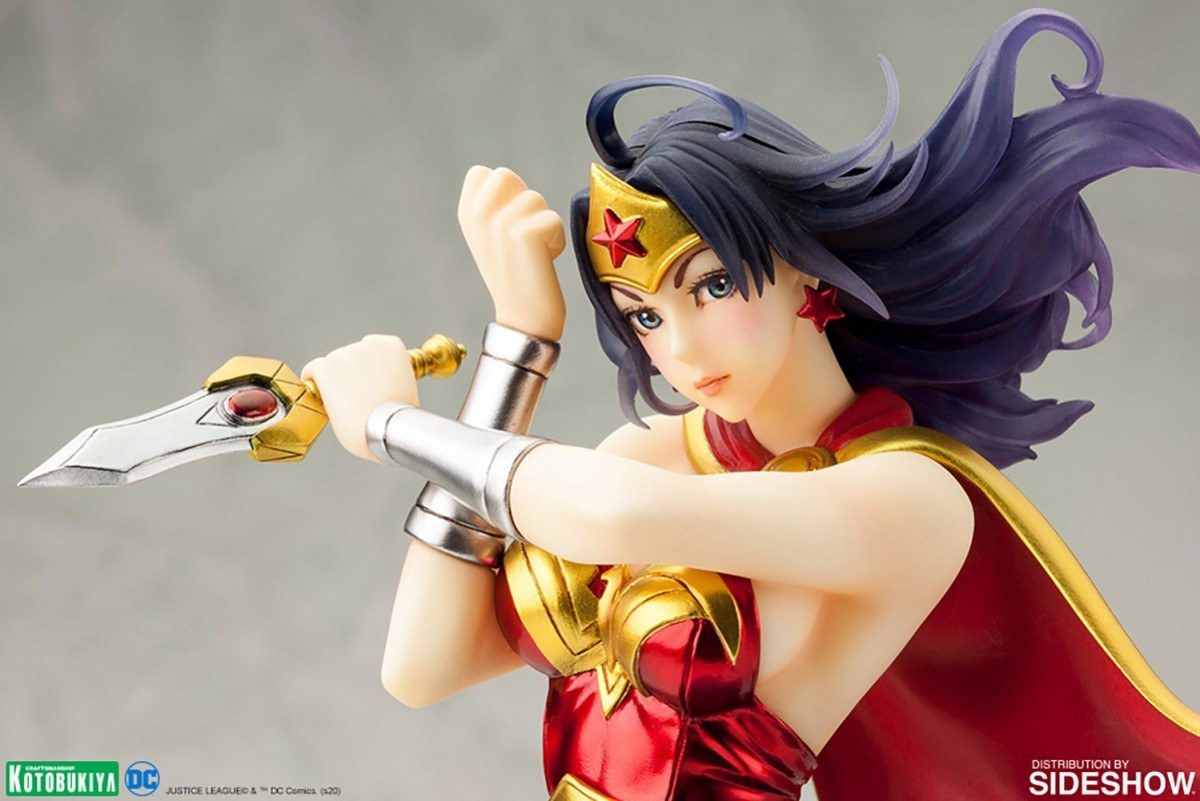 One of The Big Three of DC COMICS, Wonder Woman returns to the BISHOUJO line in an all-new sculpt with the ARMORED WONDER WOMAN BISHOUJO STATUE! Illustrated and stylized by the beloved illustrator, Shunya Yamashita, Wonder Woman goes through a costume change from her classic leotard to a completely new sculpt. She can be seen donning a star-spangled skirt with a billowing gold-lined cape.
