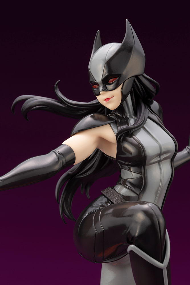 Her toned physique and full-bodied battle pose created by Tsubame are kept the same, while the costume this time uses black and gray as its base tones with the mask now in red.