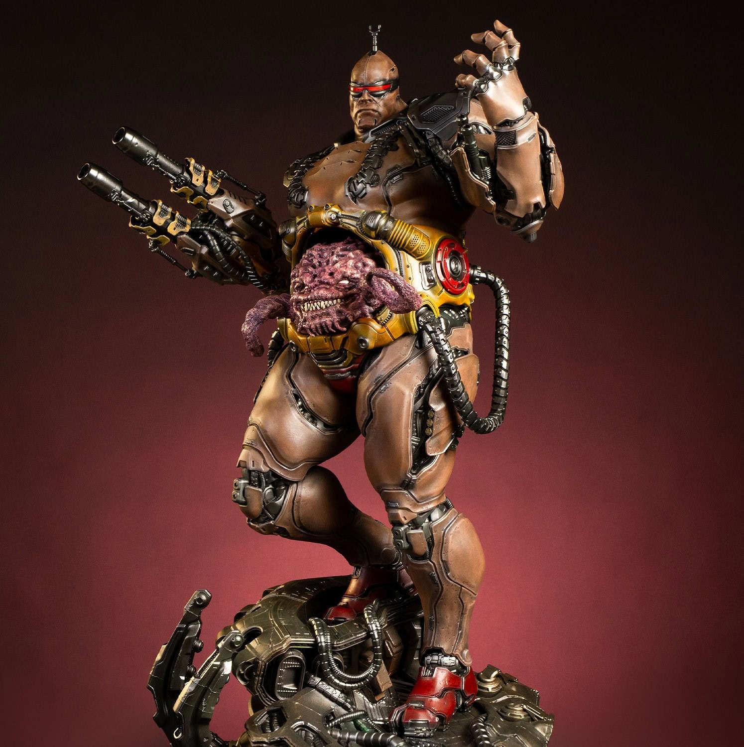 Standing an impressive 34” tall, this fully sculpted resin statue depicts Krang piloting his massive humanoid android. This exciting new redesign of Krang’s android by the Kucharek Bros. is packed with incredible details that make this a must have for any TMNT fan. Krang sits in a high tech upgrade of his yellow compartment at the center of the android with a malicious grin plastered across his face.
