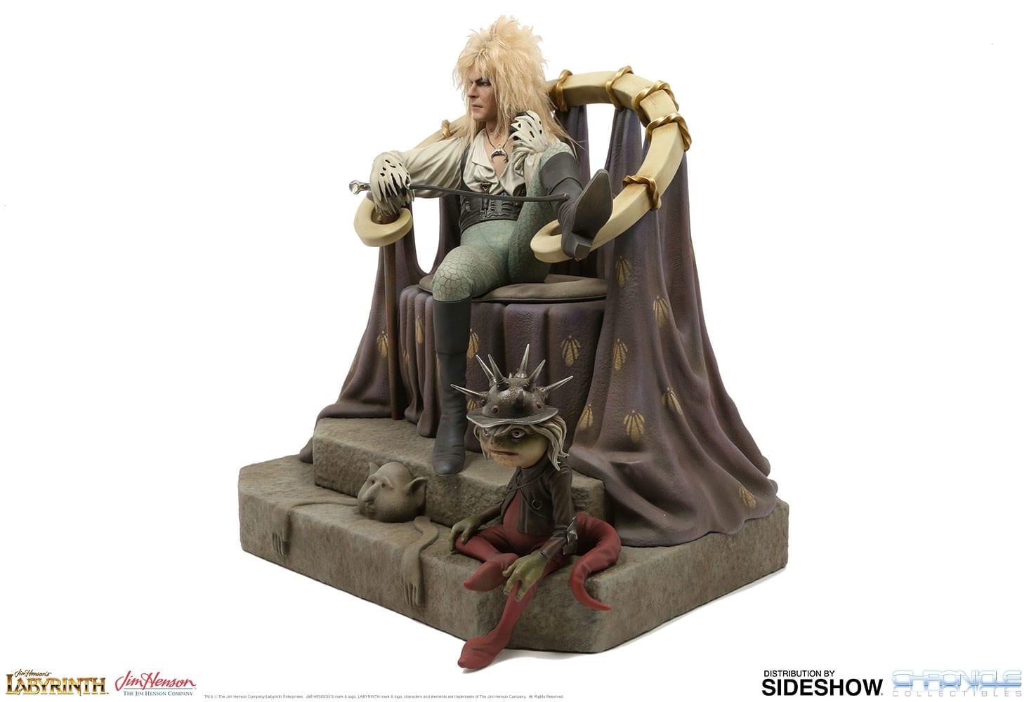 This mixed media statue features life-like hair and an immaculately detailed throne base with companion goblin. For years, fans around the world have been asking for a Jareth collectible that seizes the essence of the character. Look no further than this enchanting offering from the skilled artisans of Chronicle Collectibles.
