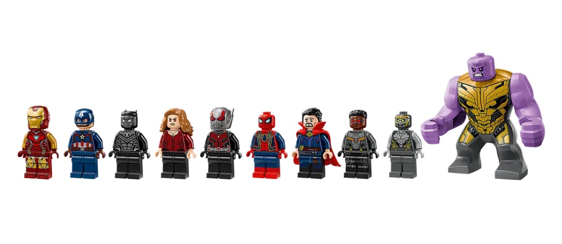 • LEGO® Avengers figures – Captain America, Black Panther, Iron Man, The Scarlet Witch, Ant-Man, Iron Spider, Doctor Strange, Falcon and Chitauri minifigures, plus a Thanos figure and an Ant-Man mech