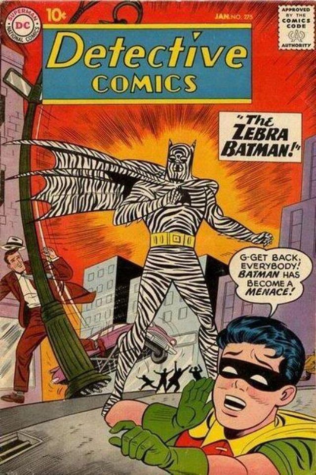 And here’s a look at the cover to Detective Comics #275, featuring The Zebra Batman!