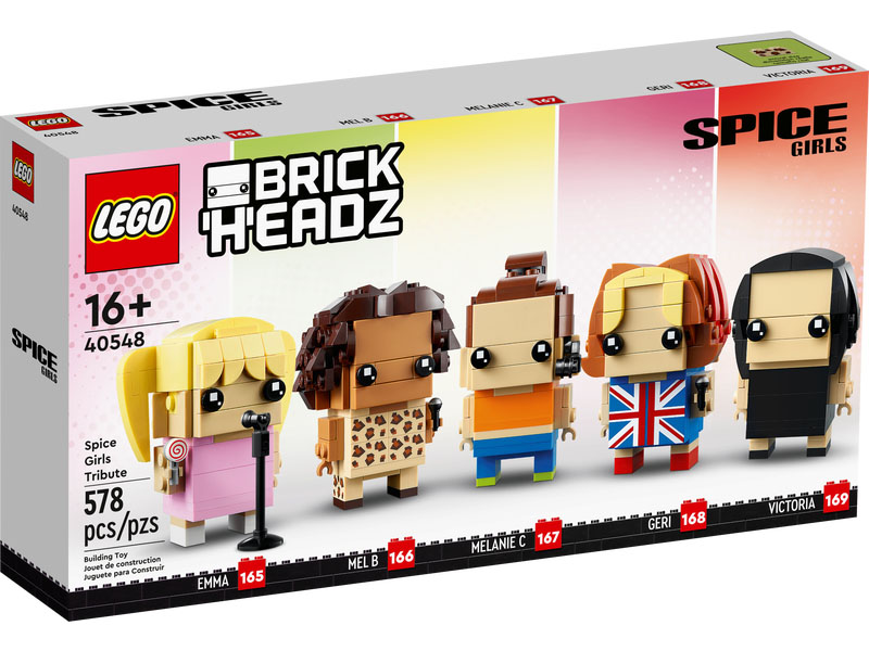 The Spice Girls, LEGO BrickHeadz style – This buildable LEGO BrickHeadz Spice Girls Tribute (40548) brings Emma, Geri, Melanie C, Mel B and Victoria, in iconic costumes, to super fans’ bedrooms