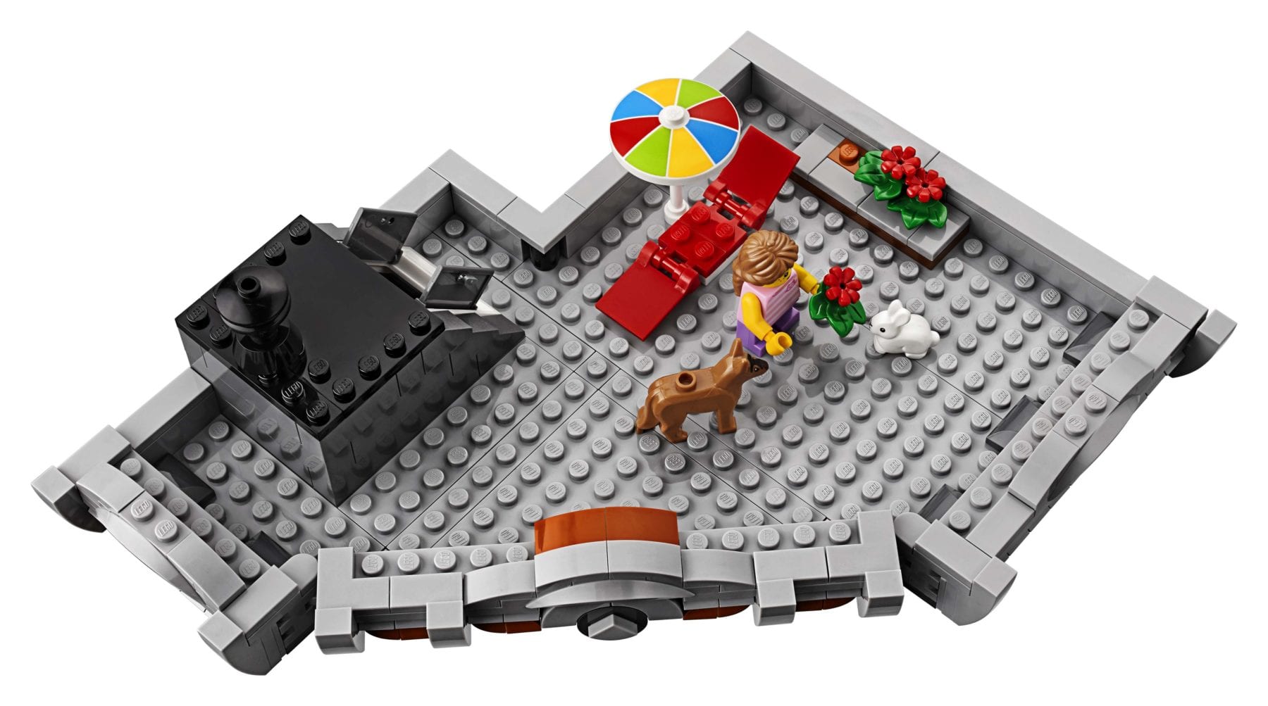 Drop by the LEGO® Creator Expert 10264 Corner Garage, where you’ll discover a world of fun and surprises! This amazing model comes with removable building sections for easy access to the highly detailed interior and comprises 3 stories. On the ground level there’s a 1950s-style gas station with fuel pump, kiosk and a vehicle workshop complete with a roll-up door, vehicle lift and tire mounter. At the mid-level animal clinic you’ll find an examination table, fish tank, and a waiting area with sofa, while on the upper level you’ll discover a well-equipped apartment with kitchen, TV, sofa, bed and a staircase that leads to a rooftop terrace with sun lounger, parasol and flower garden. The exterior of the building features a classic 1950s facade with signage, detailed windows and a decorative roofline, plus a sidewalk area with a tree and an ornate streetlamp. This charming addition to the Modular Buildings series has been designed to provide a challenging and rewarding building experience, full of nostalgia. Also includes a scooter, tow truck and 6 minifigures, plus parrot, bunny, dog, frog and fish figures.