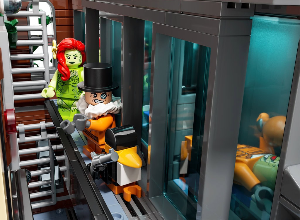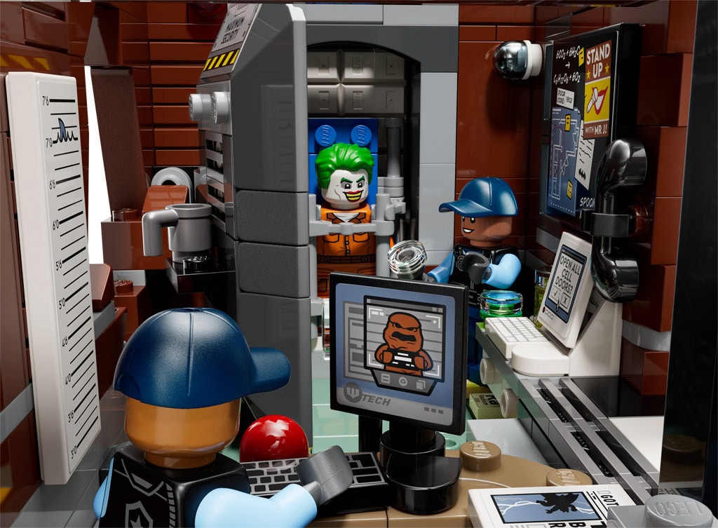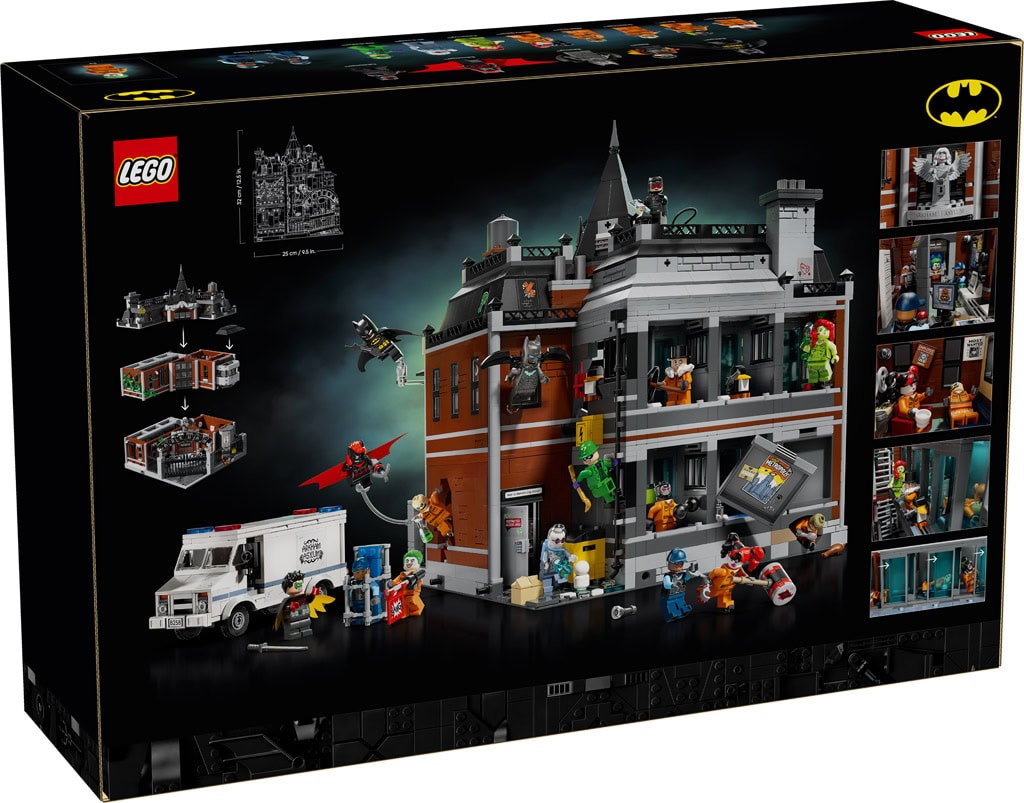 The modular building set comes with 16 LEGO minifigures: Batman, Batwoman™, Batwing™, Robin™, Mr. Freeze™, The Riddler™, Poison Ivy™, Catwoman™, Scarecrow™, Harley Quinn™, Bane™, The Joker™, The Penguin™, Killer Croc™ and 2 security guards. The model splits into 3 segments – first floor, second floor and roof – and removable elements make it possible to access the interior. Added treats include an inmate delivery van, opening prison cells and 65 stickers referencing Batman lore. Each section comes in one of 24 bags, which makes it perfectly suited for use as a Batman Advent calendar.