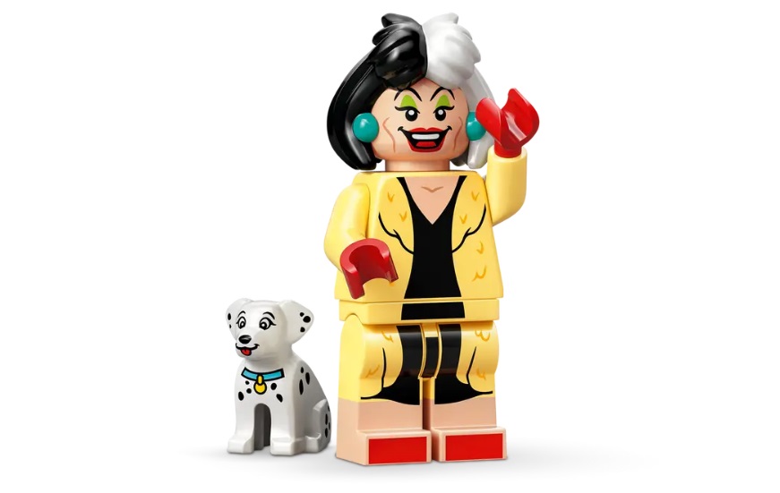 - What’s in the box – This LEGO® ǀ Disney toy building set features a classic car construction model with a Cruella De Vil LEGO ǀ Disney villain character and a dog character for play or display
