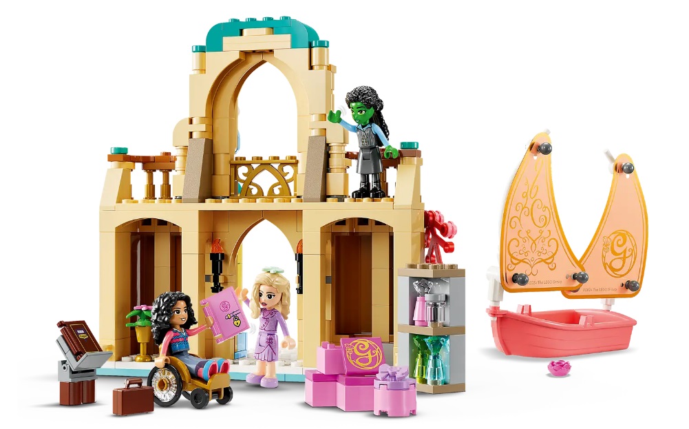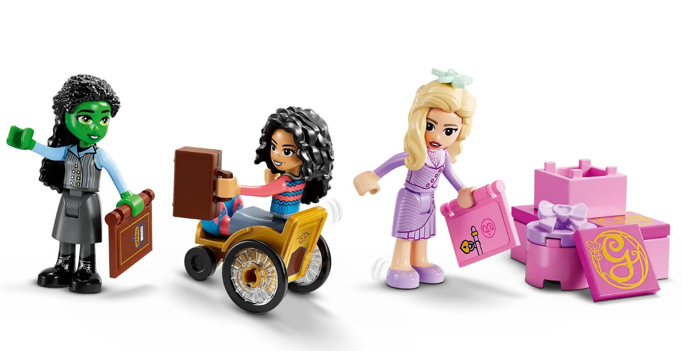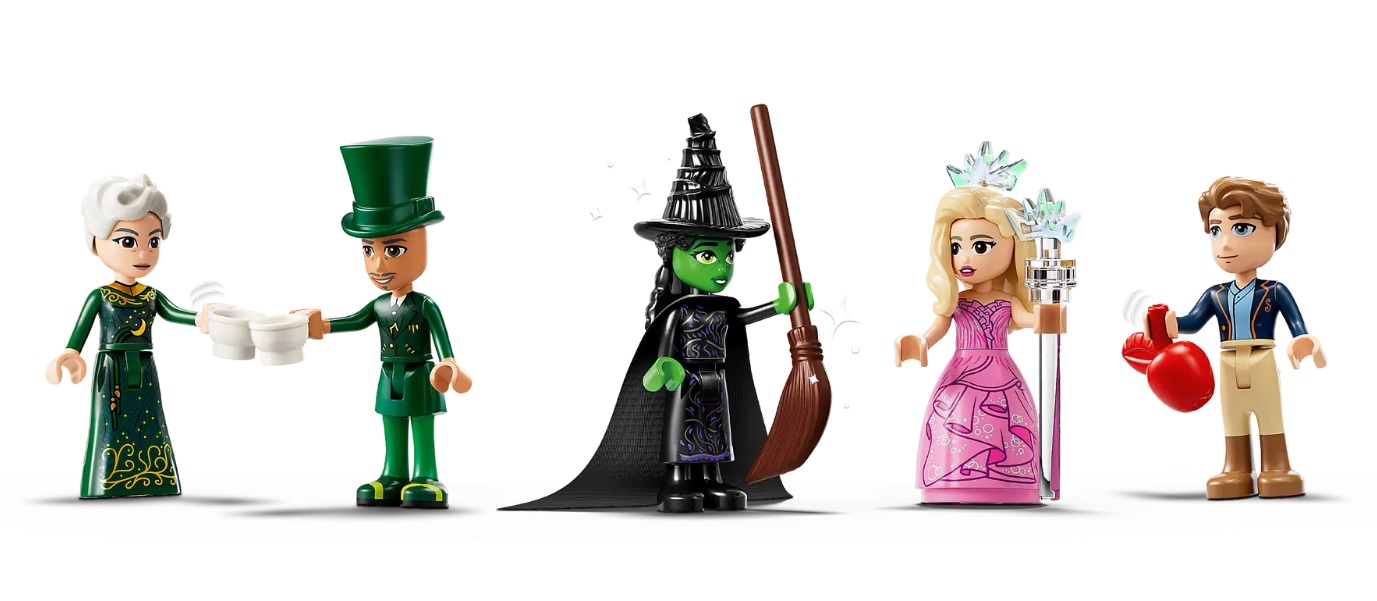 LEGO has unveiled four new sets for the big screen adaptation of the beloved Broadway musical Wicked which includes Glinda, Elphaba & Nessarose at Shiz University, Elphaba & Glinda buildable figures, Glinda & Elphaba’s Dormitory, and Welcome to Emerald City. The sets will hit shelves on October 1st, ahead of the film’s November release; check out the promotional images and details below…