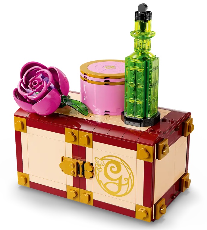 Kids scan the set’s hidden QR code to access unique LEGO® Wicked content and sing along to the “Popular” hit from the movie. By placing the mini-dolls on the spinning stand, kids make the characters ‘dance’ along to the music! When the play is over, close the bedroom and transform it into Glinda’s trunk, which can be locked with a key!