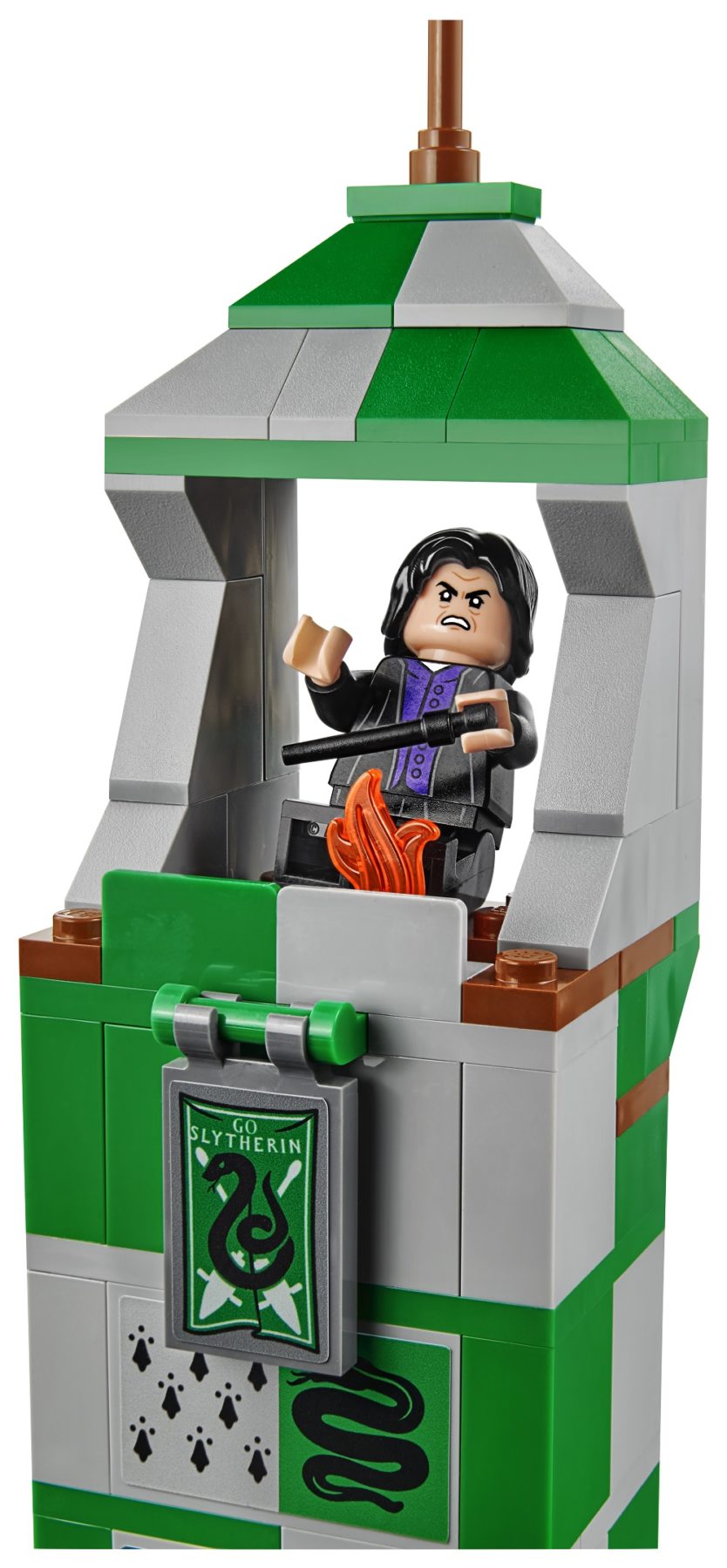 Jump on your broom and enter the LEGO® Harry Potter™ 75956 Quidditch™ Match! Join Harry, Hermione and Professor Snape™ for some magical mischief, and experience the thrill as you fly through the Gryffindor™ house tower hatch and onto the pitch. Score a point by throwing the