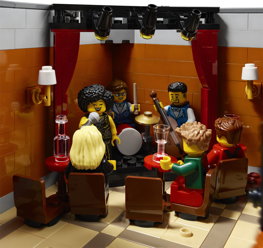 8 detailed minifigures, including a jazz singer, bassist and drummer, set the scene for a show that will have the audience on their feet all evening. Intricate details include a mini microphone, a mini saxophone and a mini LP record.