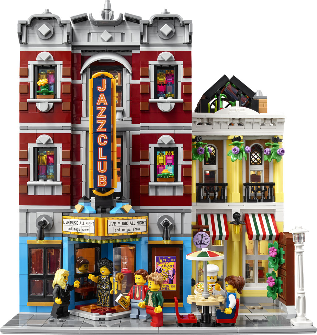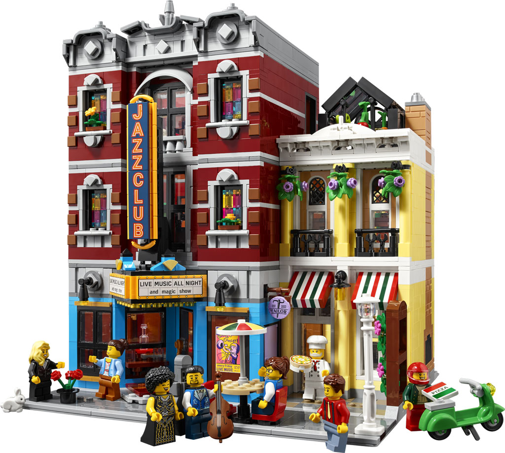 • A club for cool cats – This building set is packed with detailed sections, including a pizzeria, a tailor’s workshop and the jazz band’s dressing room