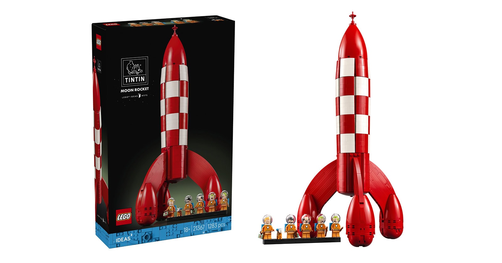 - ROCKET MODEL BUILDING KIT – Launch a personal mission to recreate the iconic Tintin® Moon Rocket (LEGO® Ideas 21367) from the classic Destination Moon and Explorers on the Moon comic books
