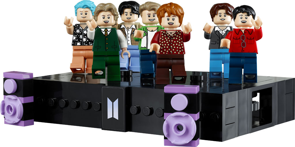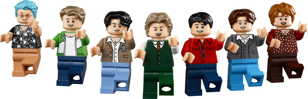 - LEGO® minifigures of all the BTS group members – RM, Jin, SUGA, j-hope, Jimin, V and Jung Kook minifigures, each with microphone elements