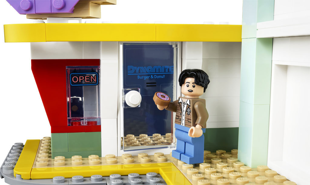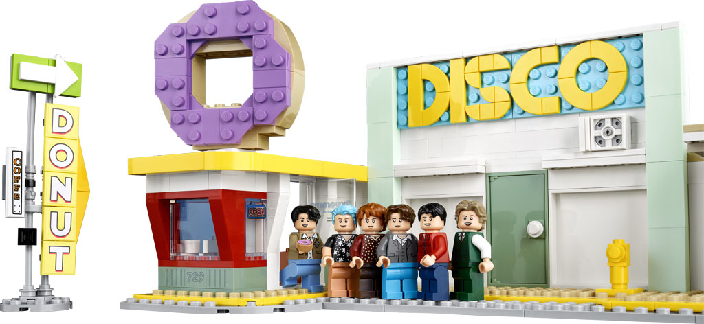 Capture the joyful energy of 21st-century pop icons RM, Jin, SUGA, J-hope, Jimin, V and Jung Kook with the LEGO® Ideas BTS Dynamite (21339) music video set. Find your building groove to recreate colorful scenes from the video for their multi-platinum single Dynamite, with LEGO brick versions of the disco, record store, donut store, ice-cream truck and more. Add LEGO minifigures of the group members to the different locations or place them all on the special stage and turn the wheel to see them dance.
