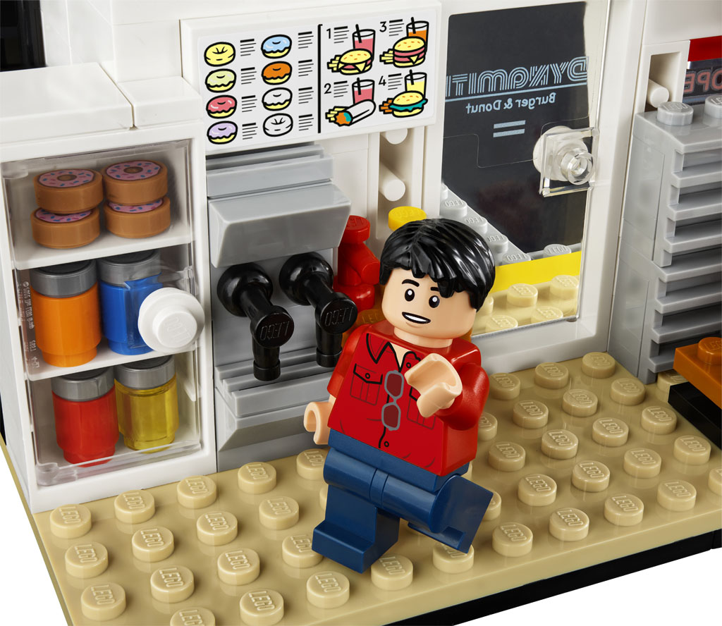 - Build scenes from the video – LEGO® brick versions of the disco, record store and donut store, each packed with authentic details, plus the ice-cream truck, basketball hoop and 2 palm trees