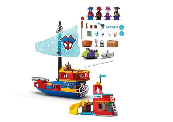 - 4 MINIFIGURES – Join Spidey, Ghost-Spider, Miles”Spin” Morales, Green Goblin and Trace-E for fun on a pirate ship, Spider Island and 2 other small boats in this action-packed building toy