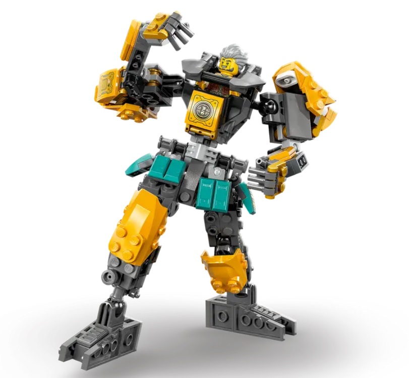 This is the first NINJAGO City model to feature a posable mech toy for kids to build and customize with a selection of armor and stickers, using the cranes to lift and lower parts between floors. Once built, the mech can then be displayed on a platform in the mech bay.