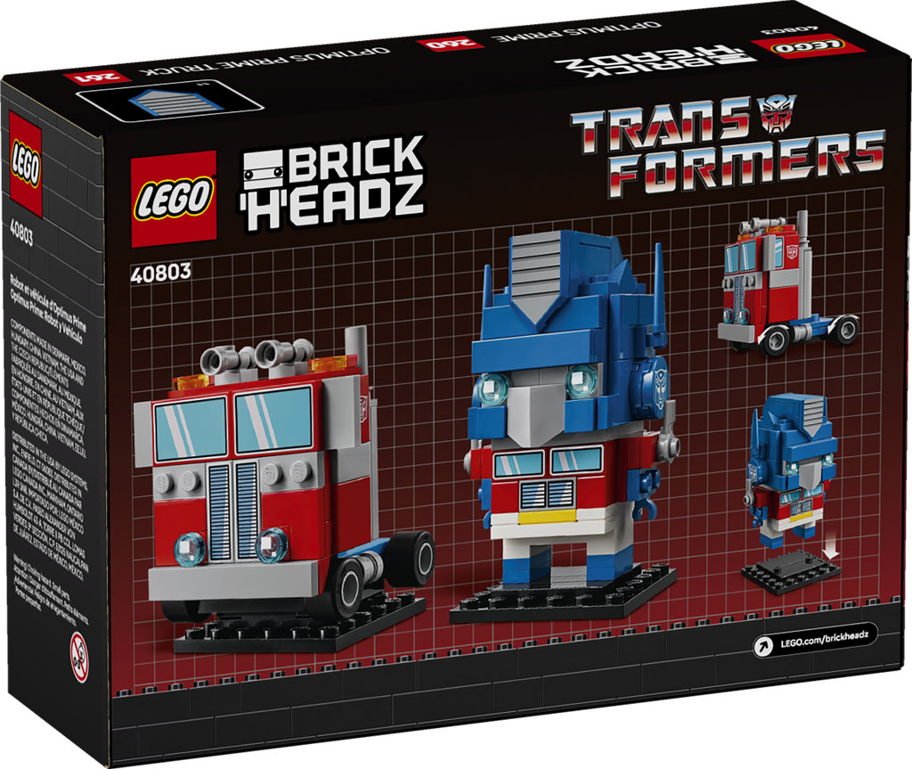 • A treat for Optimus Prime fans – This pair of collectible BrickHeadz™ figures is a great gift idea for any kid, LEGO® builder, model-maker or fan of the Transformers toys or action-figure playsets