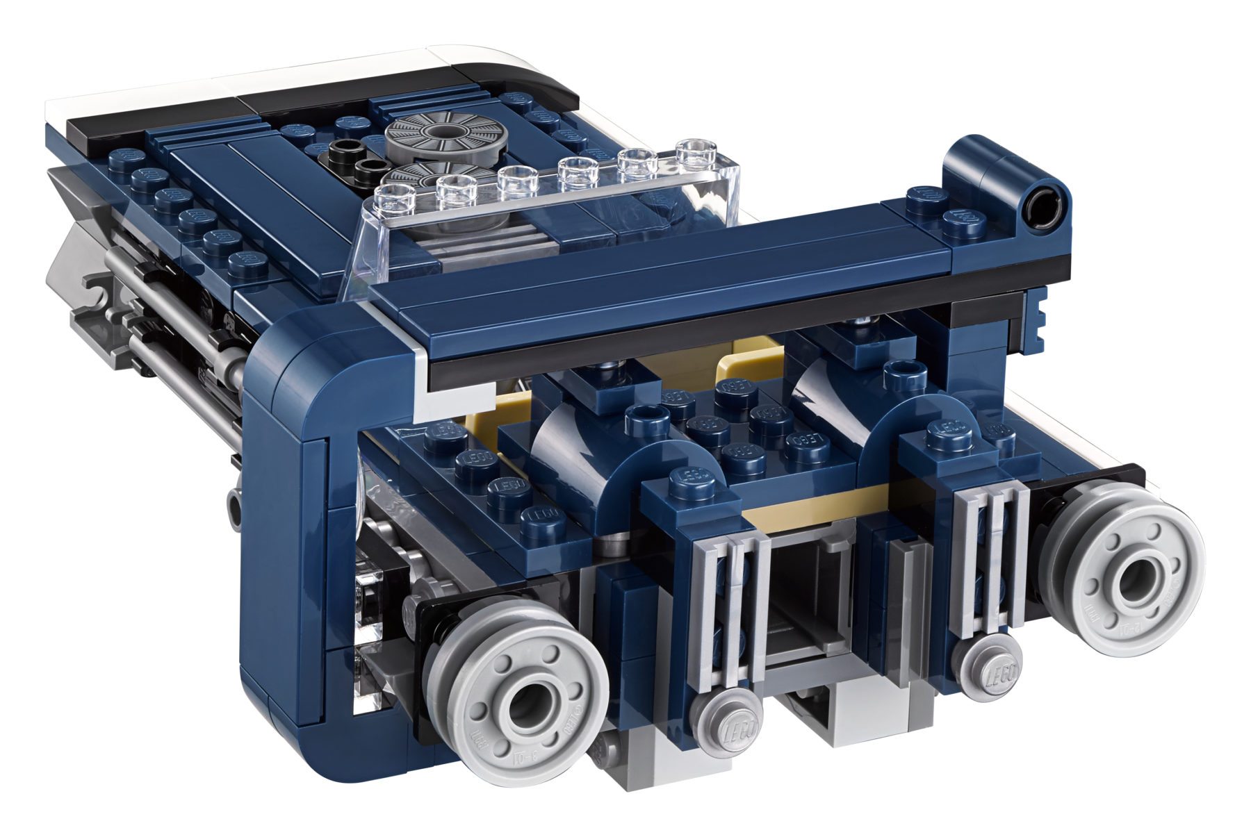 Features an open 2-minifigure cockpit, opening hood with ammo and accessory storage, removable engine, rear storage compartment with secret cargo, hidden wheels for a hover effect, and 2 spring-loaded shooters.