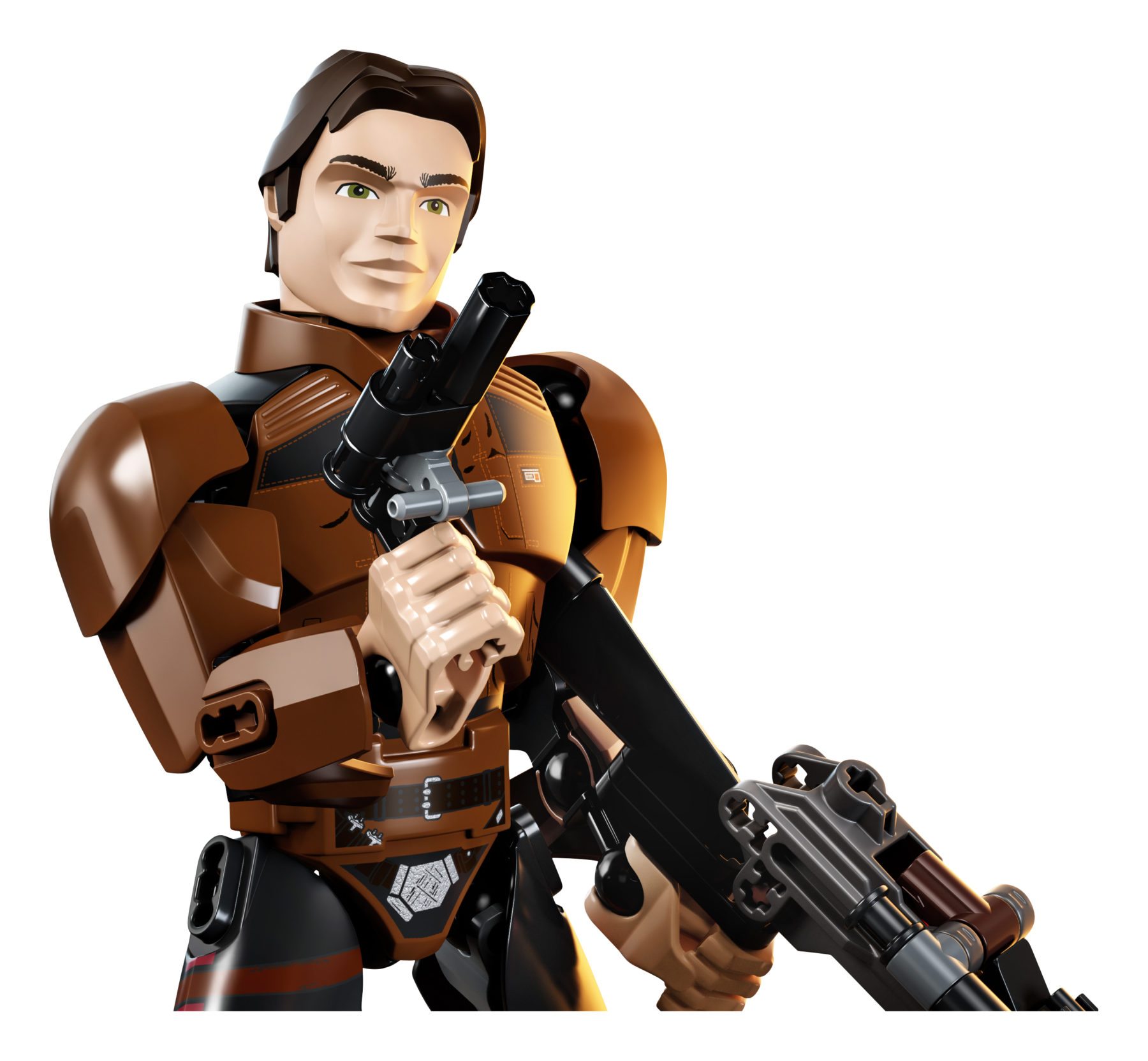 Play out exciting adventures with this highly posable LEGO Star Wars Han Solo buildable figure. This impressive galactic smuggler from the Han Solo movie features a large blaster weapon with spring-loaded shooter and hip-mounted, detachable blaster pistol. Star Wars fans of any age will love playing with this young LEGO Han Solo buildable toy.