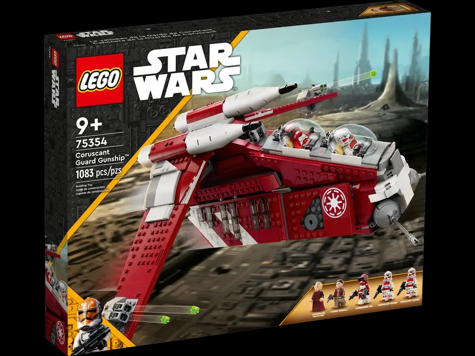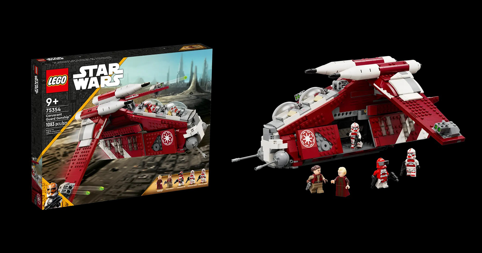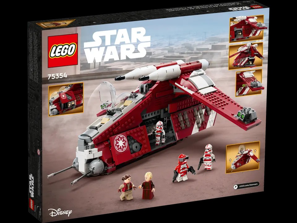 LEGO has revealed a new Star Wars: The Clone Wars-themed set set to reinforce fans’ LEGO Grand Army of the Republic in the Coruscant Guard Gunship (75354). Along with the vehicle comes five minifigures: Padmé Amidala, Chancellor Palpatine, Commander Fox, and 2 Coruscant guards. The set goes on sale on September 1st, priced at $139.99/£129.99.