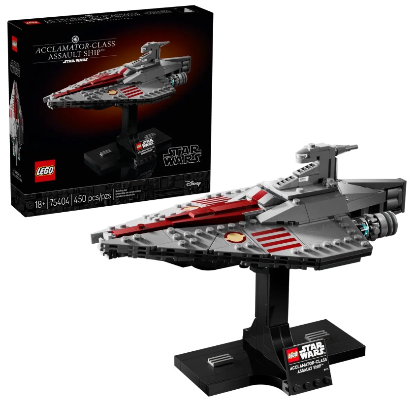 Be transported to the drama of the Battle of Geonosis as you build the first-ever LEGO® Star Wars™ construction model of an Acclamator-Class Assault Ship (75404). This Star Wars collectible build-and-display starship model captures many authentic details of the iconic vehicle seen in Star Wars: Attack of the Clones™. Enjoy quality time immersing yourself in the complex, rewarding build, and display your creation on the stand with a nameplate.
