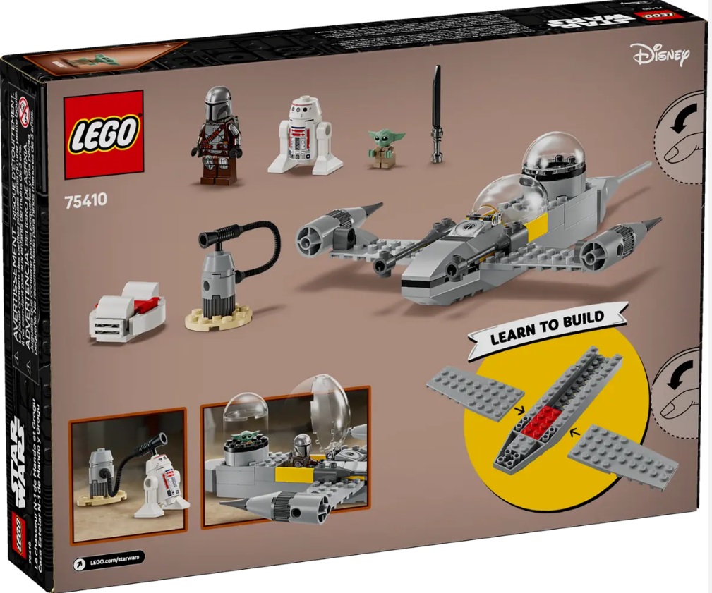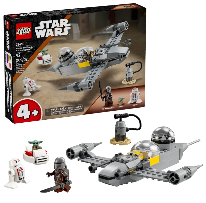 - Mando and Grogu’s N-1 Starfighter building toy – Kids aged 4 plus learn to build with LEGO® bricks and create their own fantasy stories as Star Wars: The Mandalorian™ heroes with this fun starter set