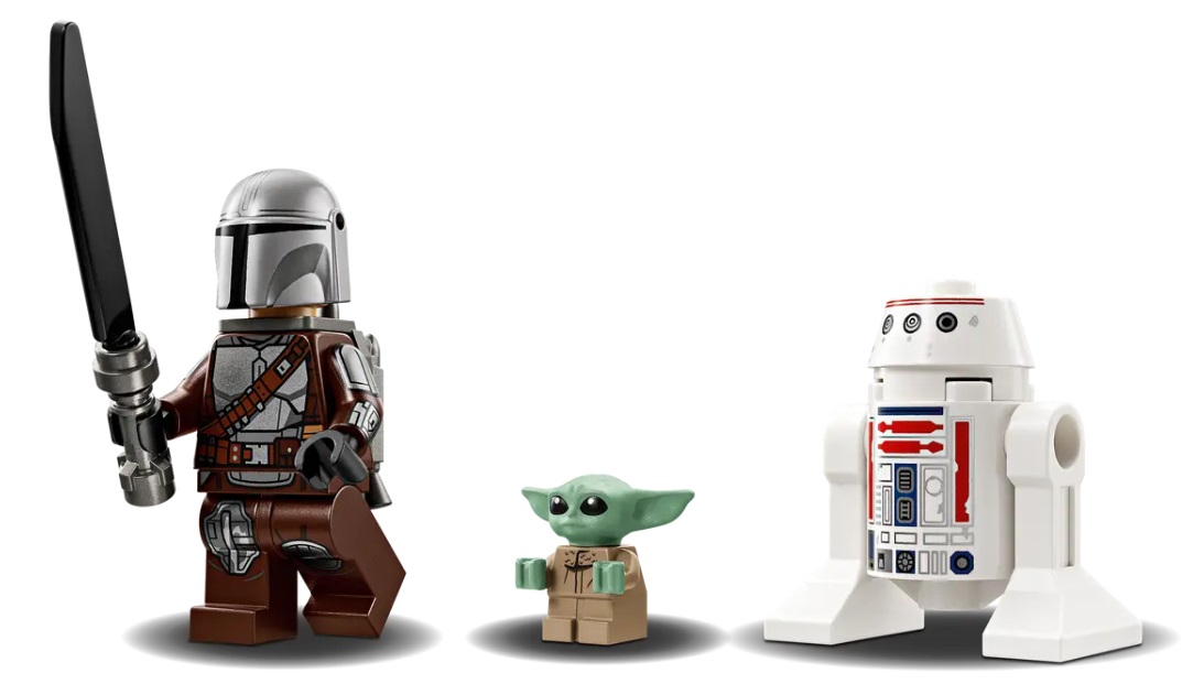 - 3 LEGO® Star Wars™ characters – The Mandalorian LEGO minifigure, a Grogu LEGO figure and an R5-D4 LEGO droid figure