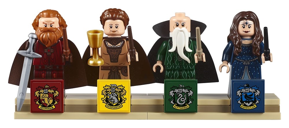 • Includes 4 minifigures: Godric Gryffindor, Helga Hufflepuff, Salazar Slytherin and Rowena Ravenclaw,with a buildable minifigure display stand.