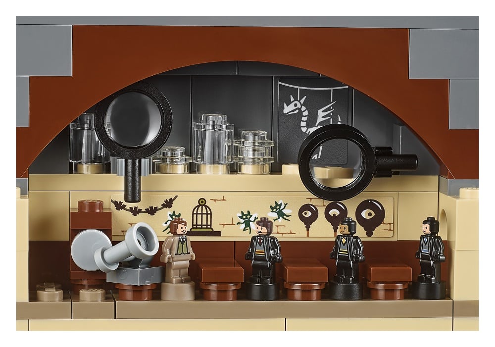 • Also features 27 microfigures: Harry Potter™, Ron Weasley™, Hermione Granger™, Draco Malfoy™, Albus Dumbledore™, Professor Snape™, Professor McGonagall™, Remus Lupin, Professor Dolores Umbridge™, Argus Filch, Lord Voldemort™, Bellatrix Lestrange, 3 students from each of the 4 houses, 2 chess pieces and the Architect of Hogwarts™ statue and 5 Dementors, plus Aragog the spider and the Basilisk figures, and a buildable Hungarian Horntail dragon.
