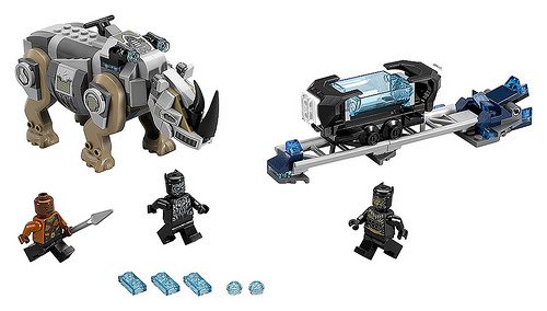 Promotional images have arrived online for LEGO’s upcoming Marvel Super Heroes Black Panther movie tie-in sets which includes Rhino Face-Off by the Mine (76099) and Royal Talon Fighter Attack (76100); check them out below…