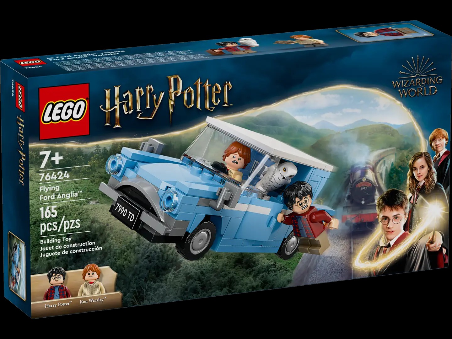 - Ford Anglia toy car – Features opening doors, a removable roof, seats for the 2 minifigures and space behind for Hedwig™, plus an opening trunk with room inside for the suitcase, wands and Scabbers™